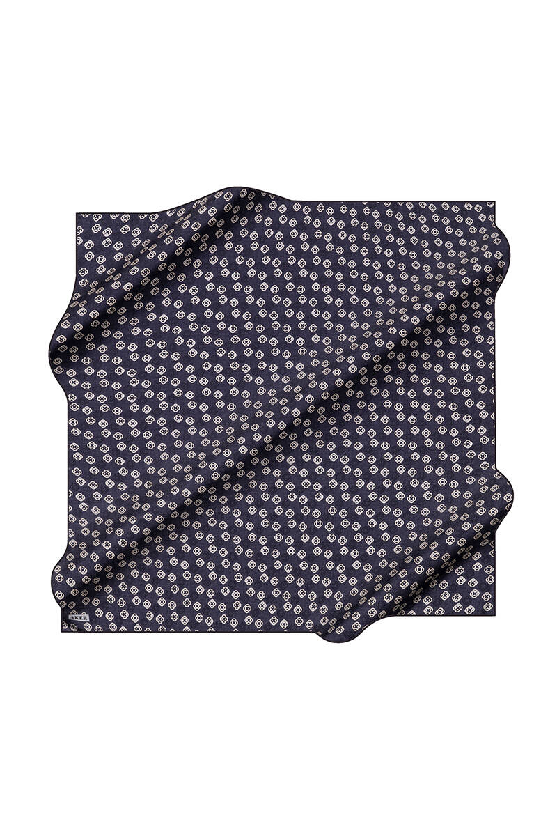 Geometrik Desenli 90X90 İpek Krep Saten Eşarp