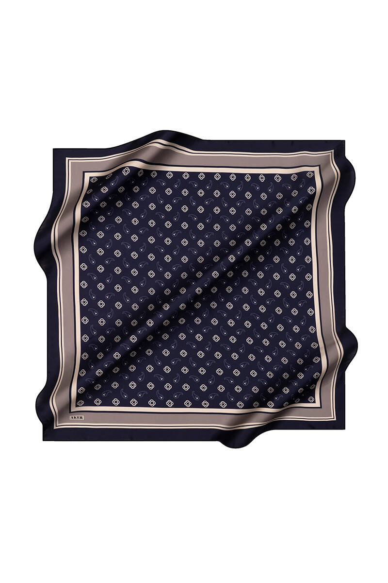 Geometrik Desenli 90X90 İpek Krep Saten Eşarp
