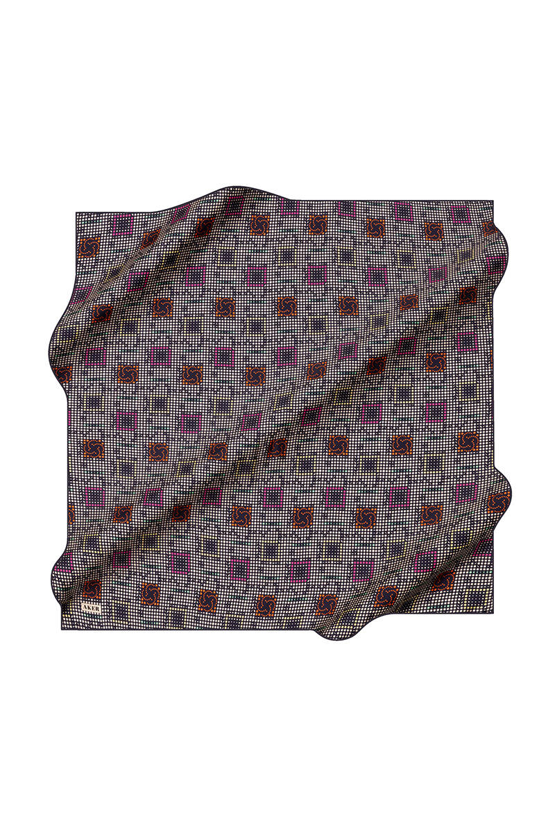 Geometrik Desenli 90X90 İpek Krep Saten Eşarp