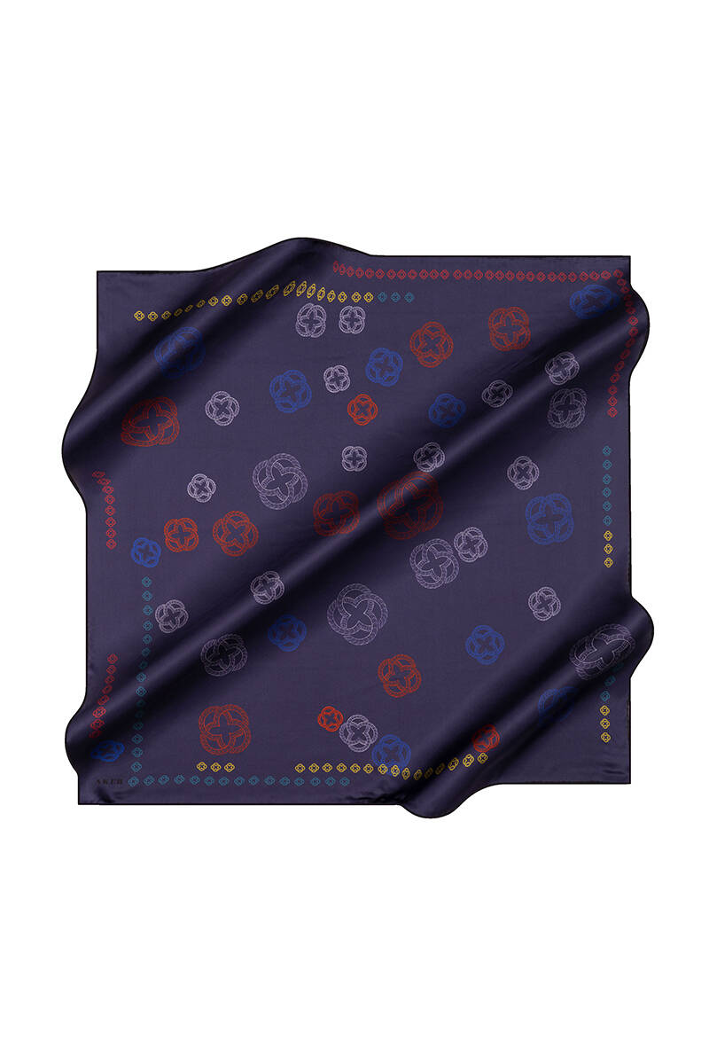 Logo Desenli 90X90 İpek Krep Saten Eşarp