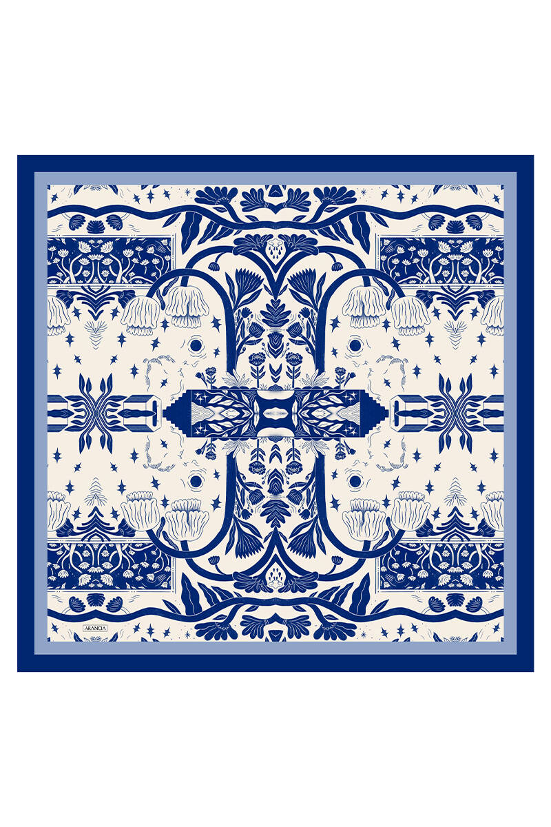 Mavi 90X90 İpek Twill Eşarp