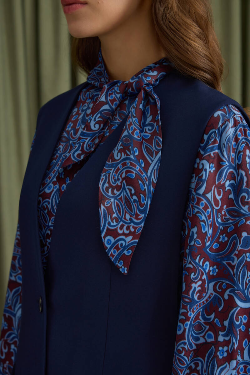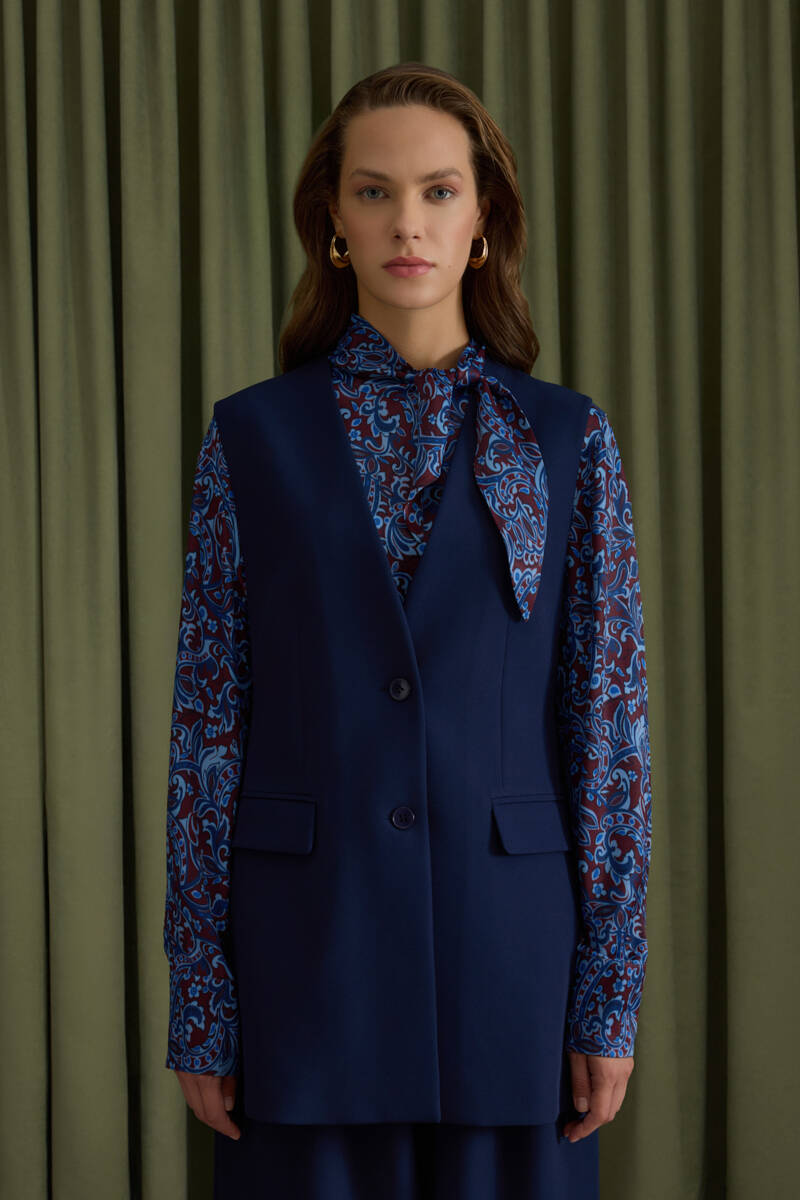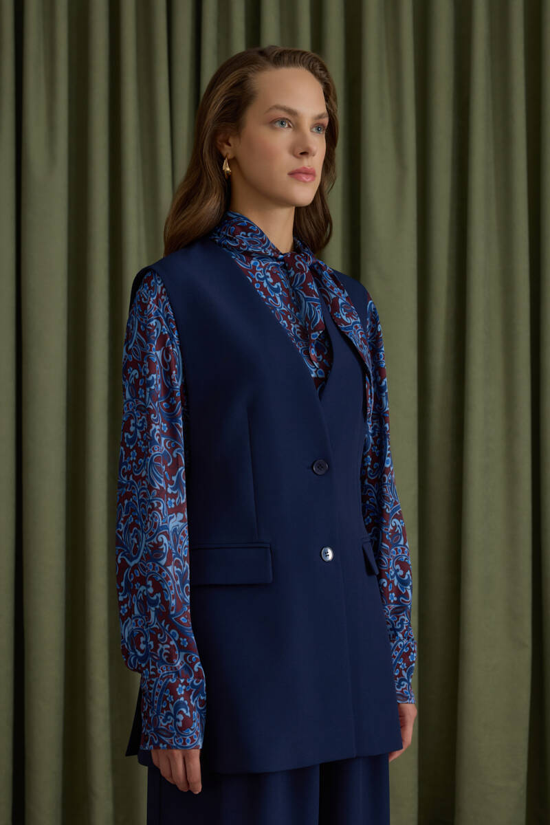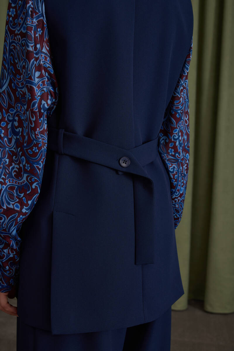 Lacivert Arkası Bant Detaylı Yelek