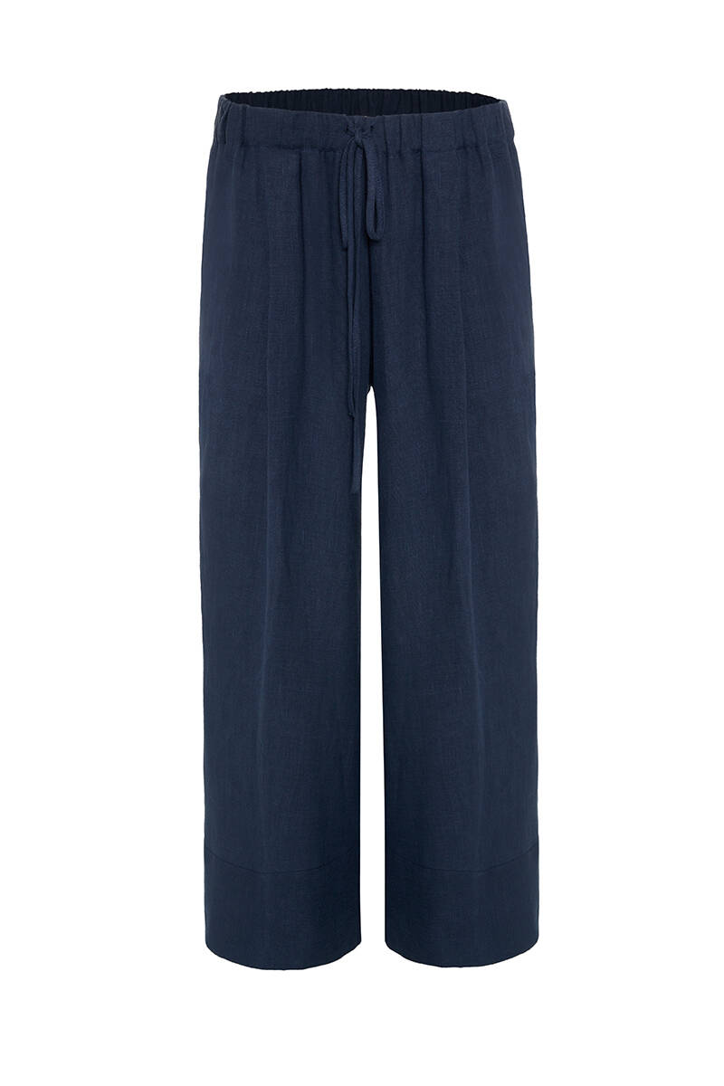 Lacivert Örme Arka Bel Lastikli Pantolon Etek