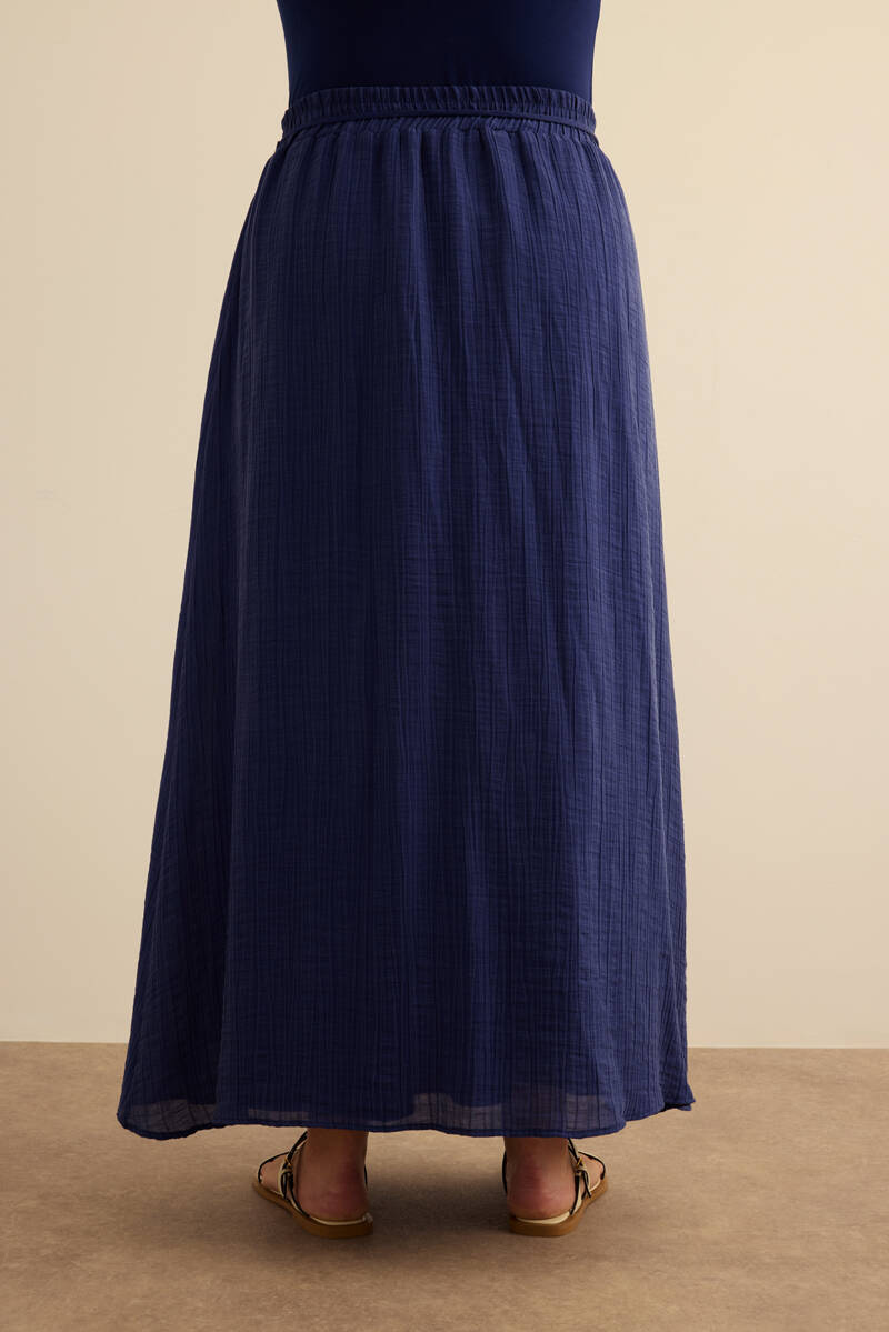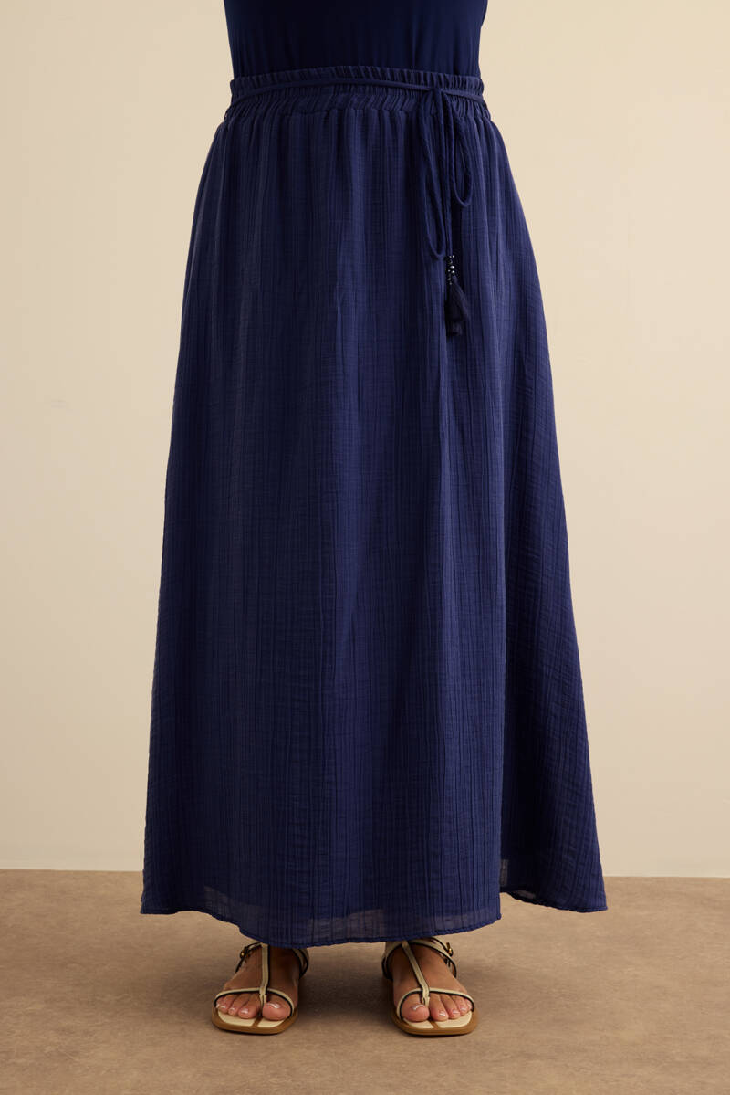 Lacivert Beli Lastikli Tencel Cotton Etek