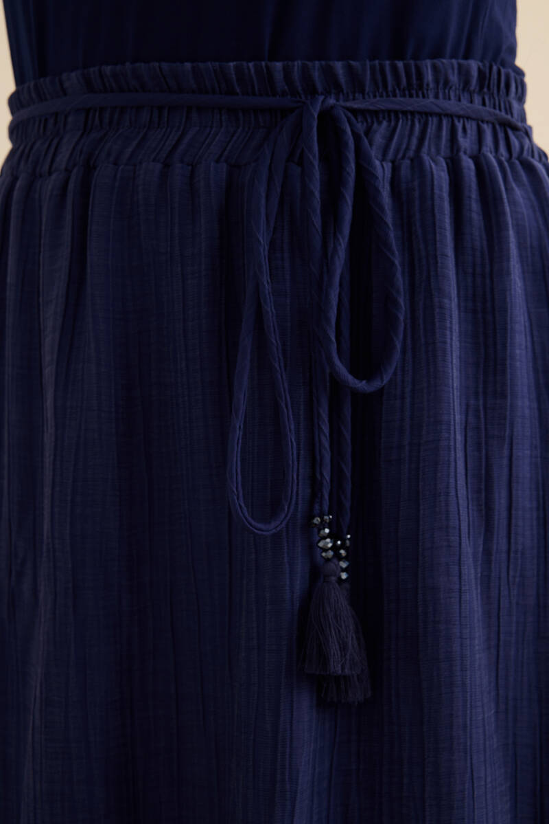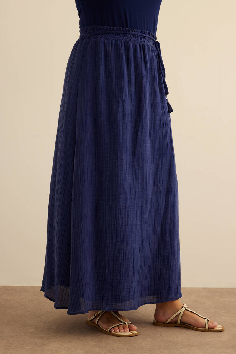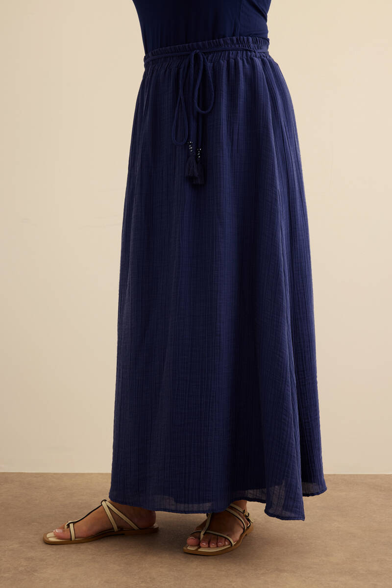 Lacivert Beli Lastikli Robalı Dokuma Etek