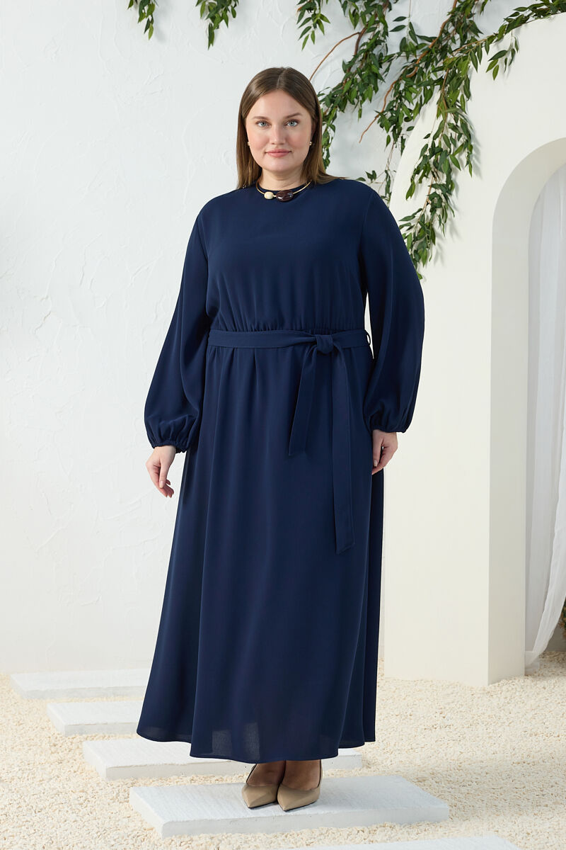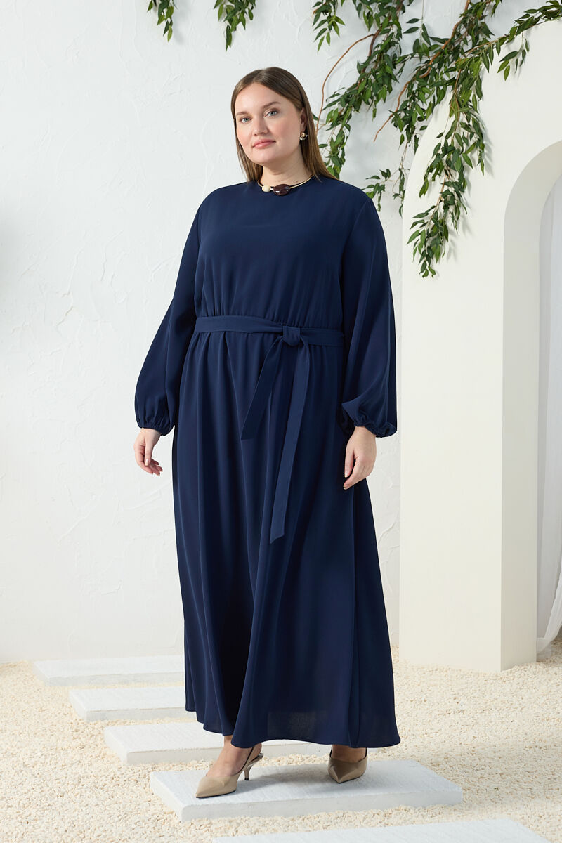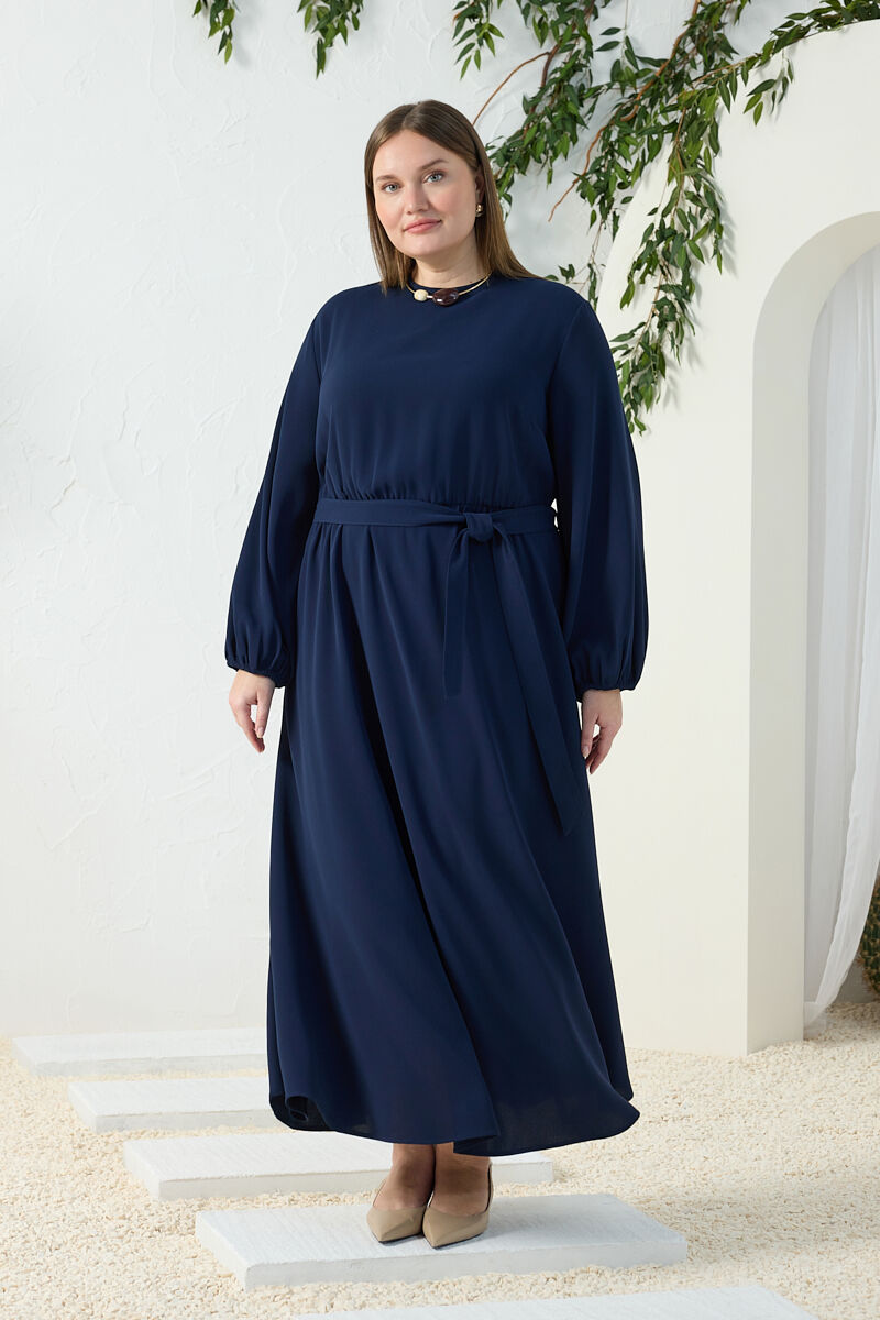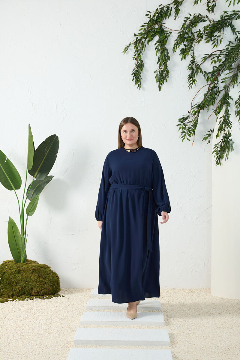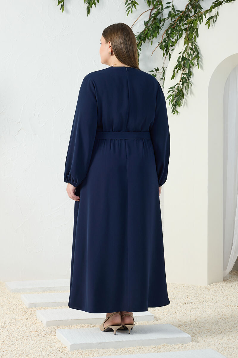 Lacivert Seyyar Çiçek Detaylı Varak Dokuma Elbise