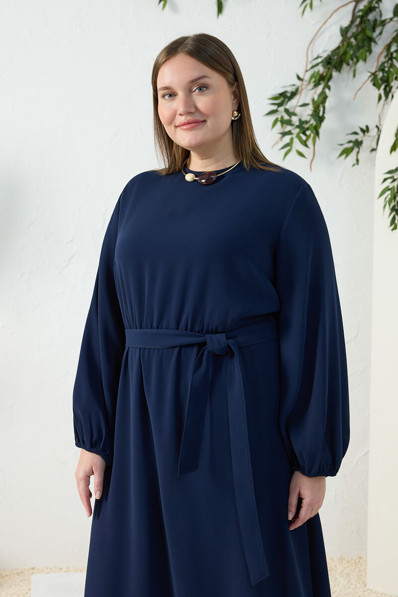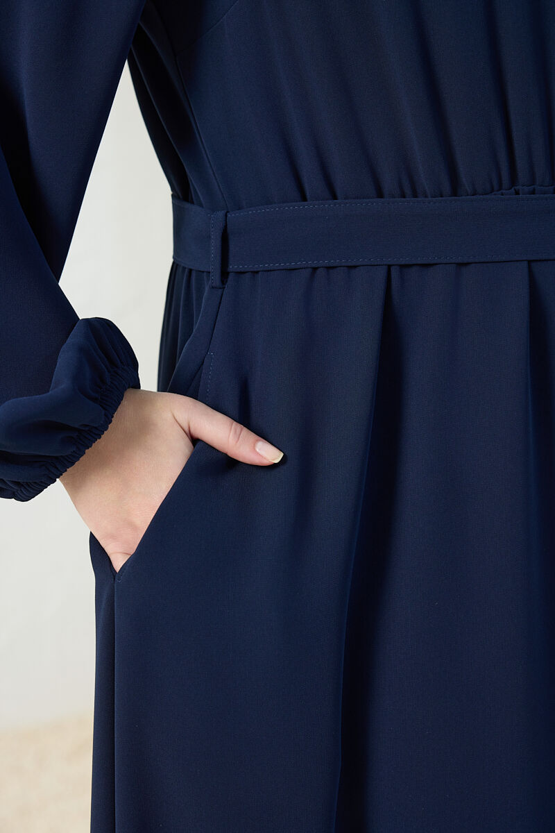 Lacivert Çizgili Garnili Tencel Cotton Gömlek Elbise