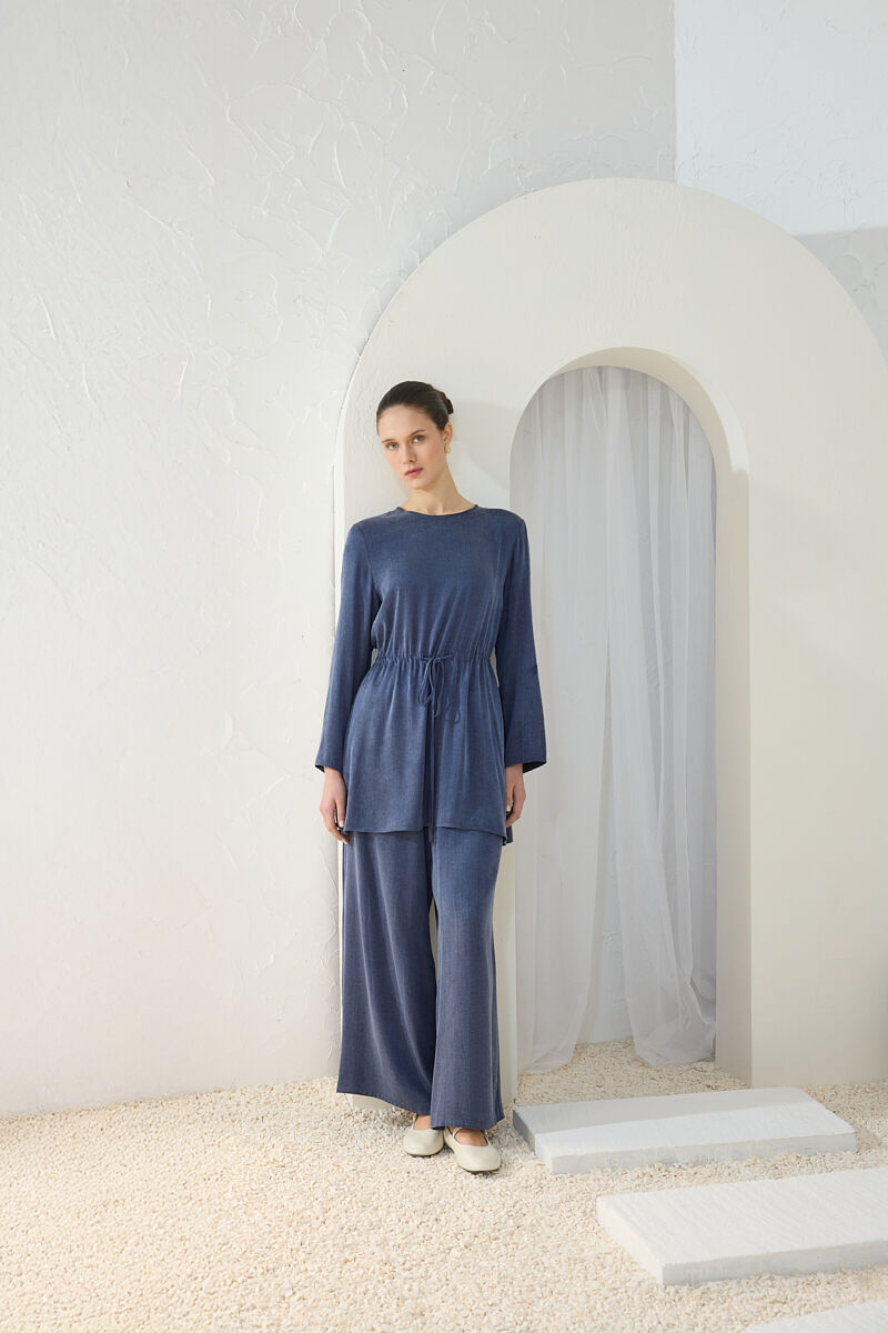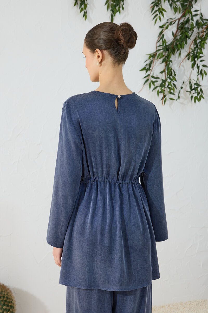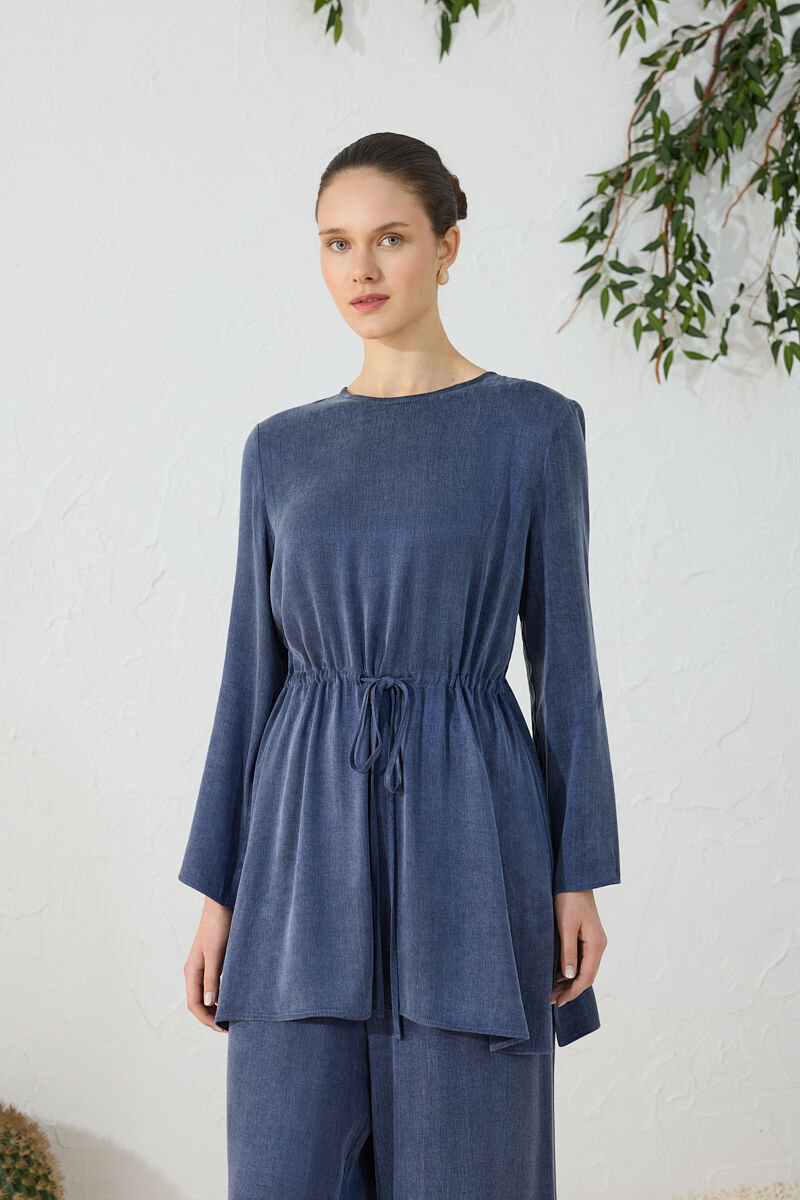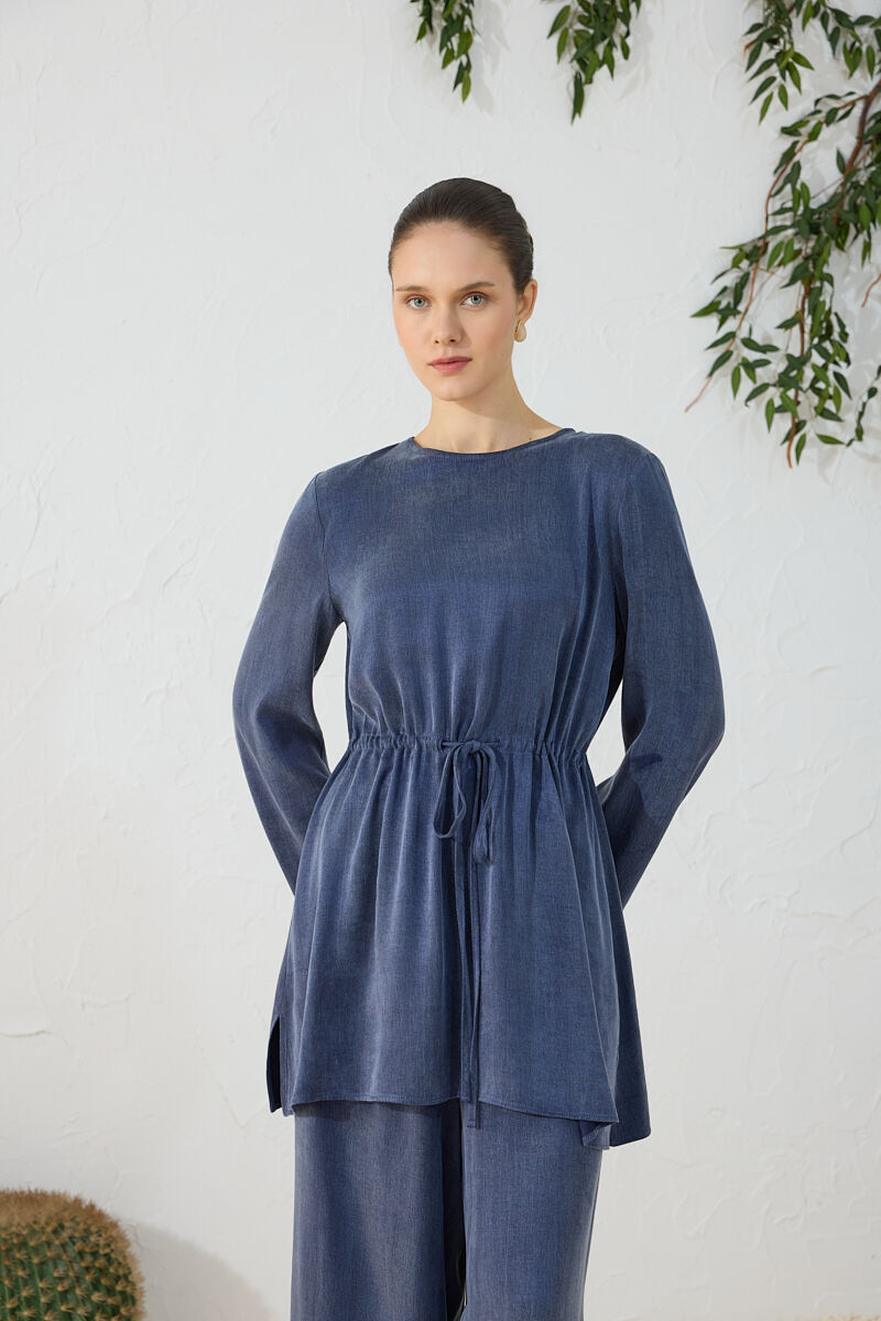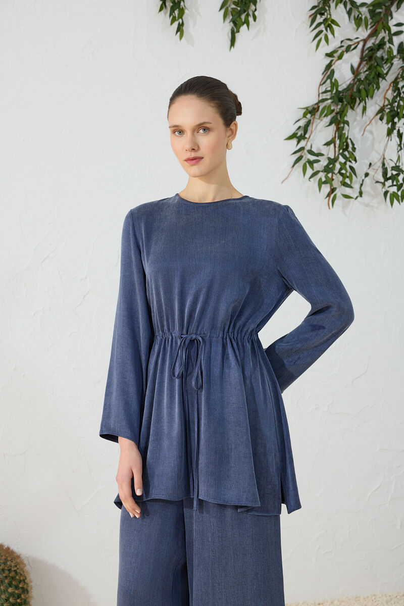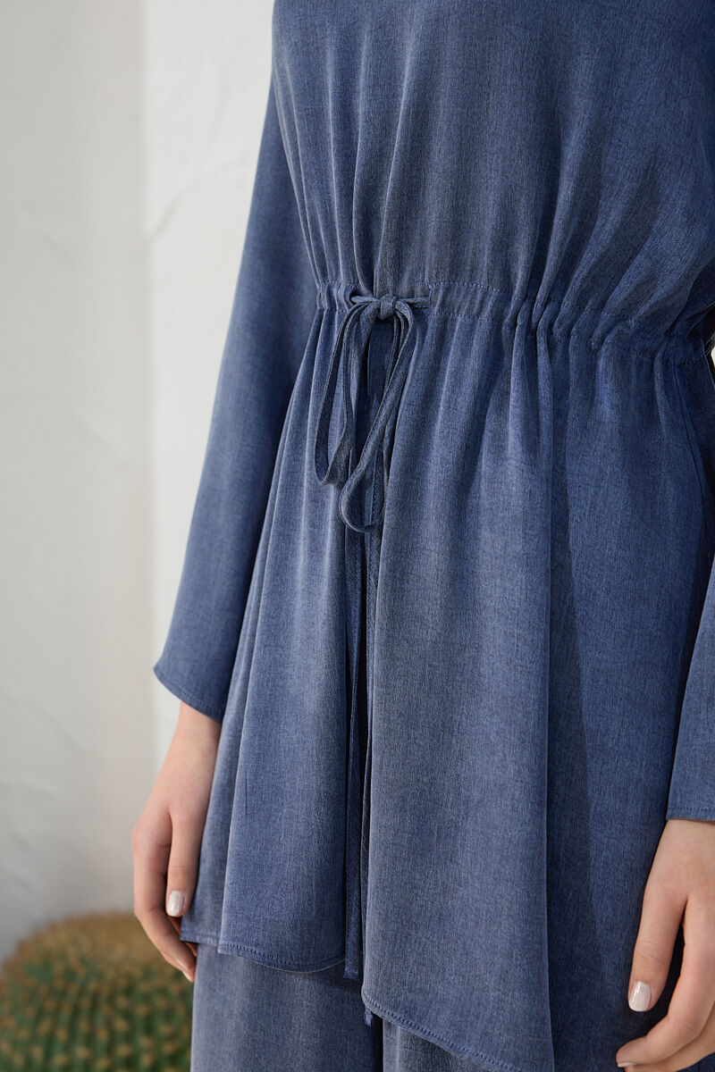 Lacivert Beli Ayarlanabilir Lastik Detaylı Tunik
