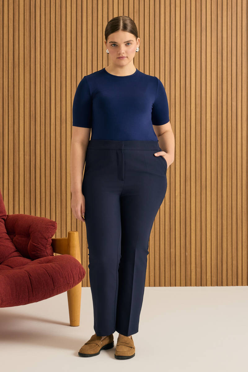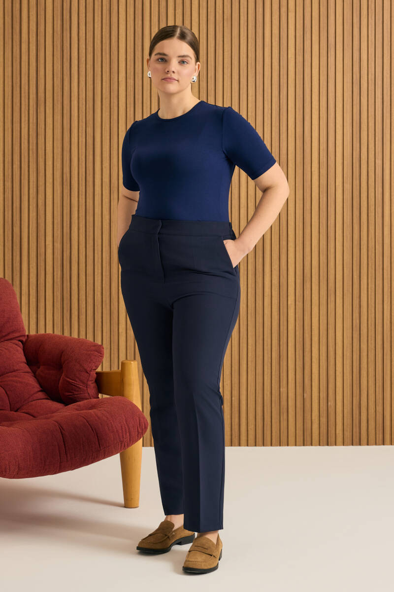 Lacivert Beli Lastikli Dokuma Pantolon