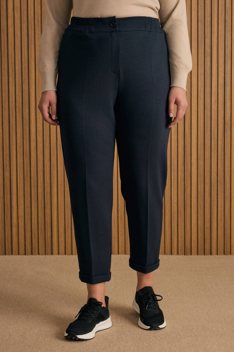 Lacivert Beli Lastikli Duble Paçalı Örme Pantolon