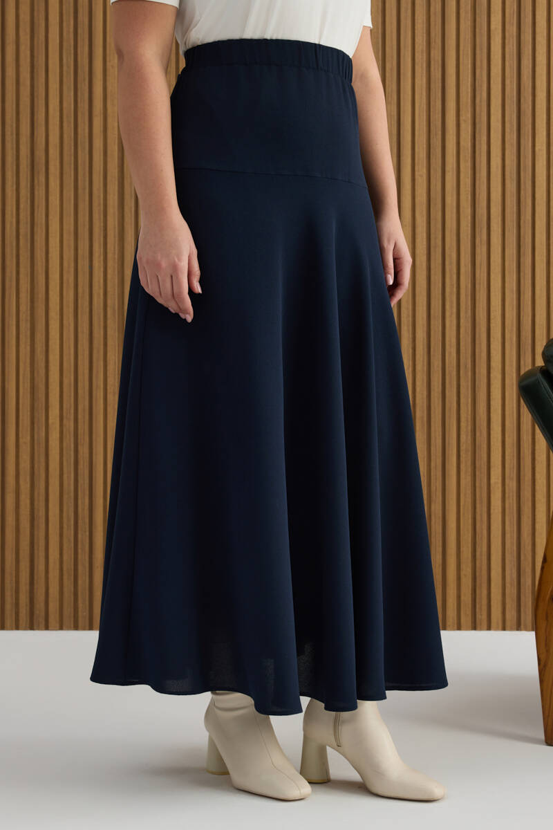 Lacivert Dokuma Beli Lastik Detaylı Etek