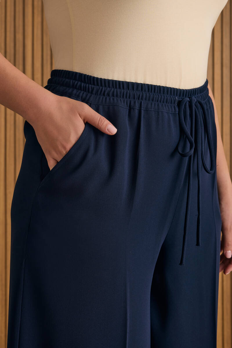 Lacivert Beli Lastikli Dokuma Pantolon