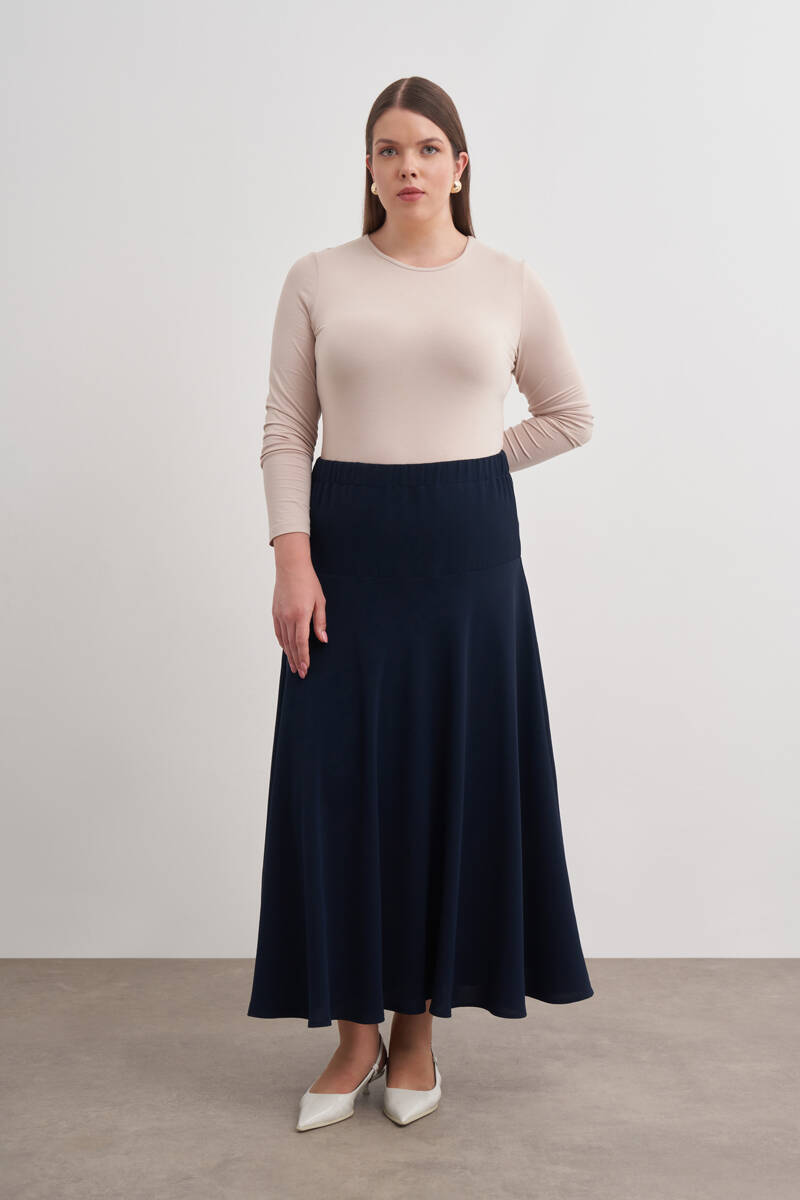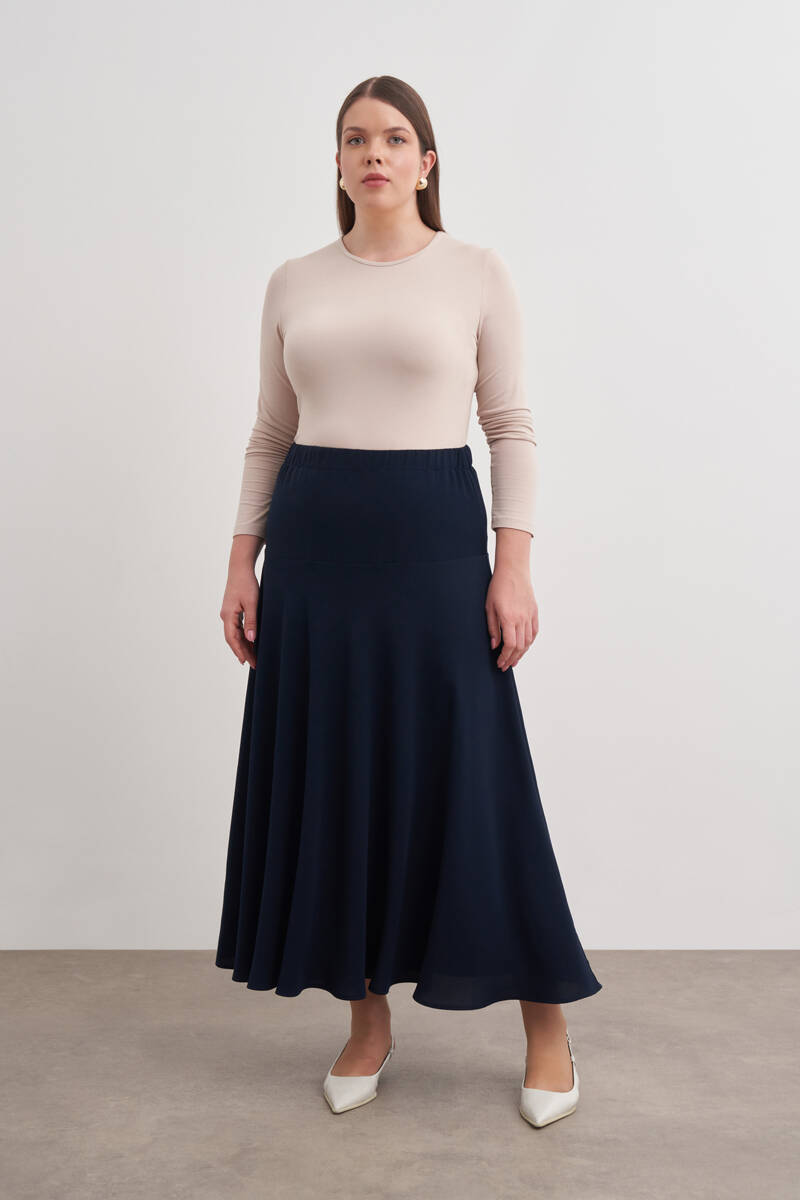 Lacivert Beli Lastikli Tencel Cotton Etek