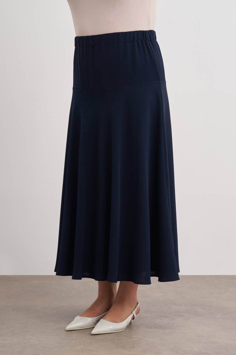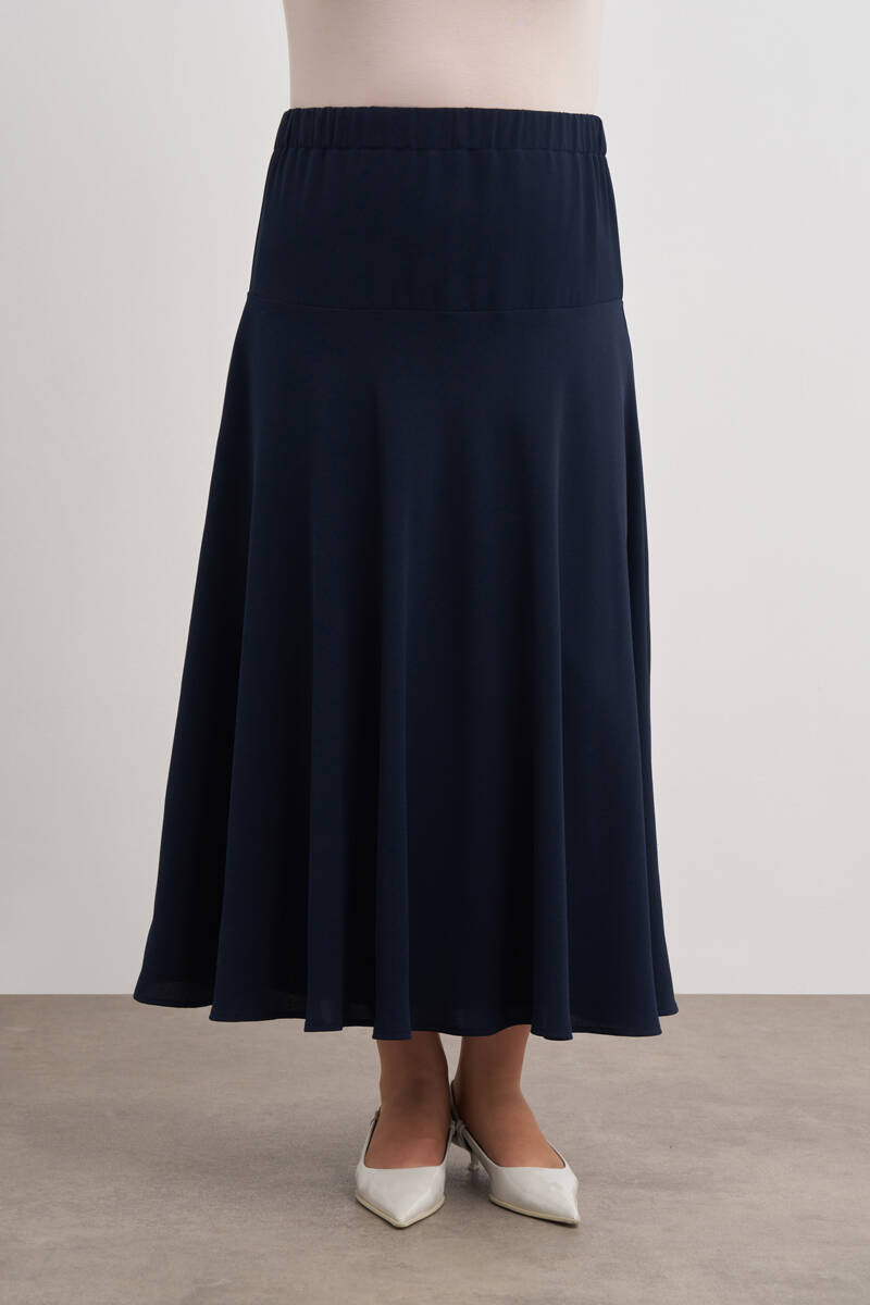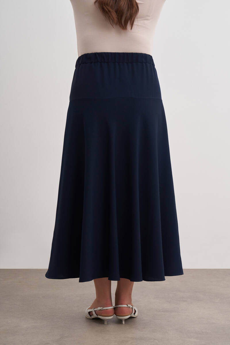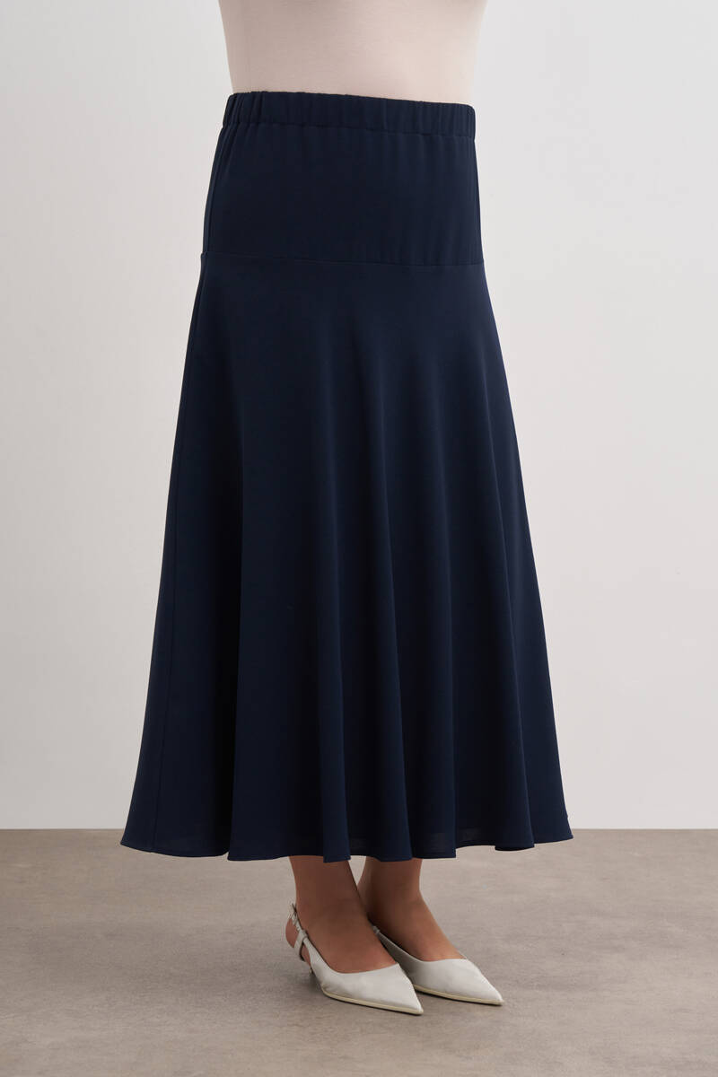 Lacivert Dokuma Beli Lastik Detaylı Etek