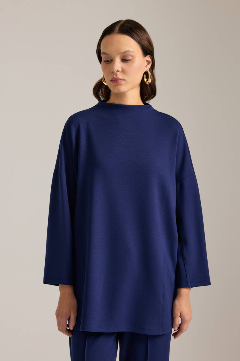 Lacivert Beli Lastikli Viscon Örme Pantolon