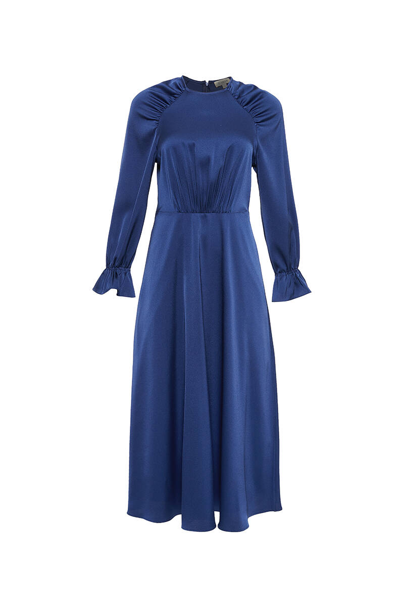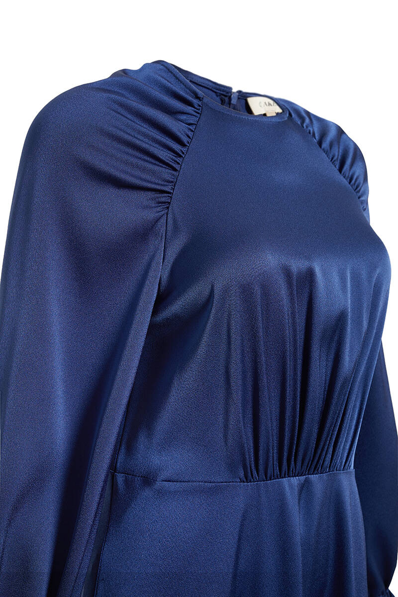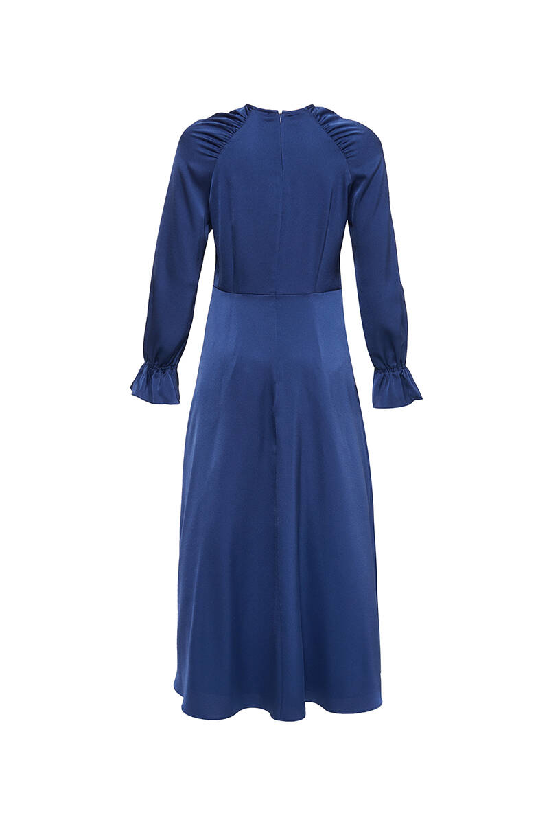 Lacivert Üst Kısmı Volan Parça Hareketli Dökümlü Elbise