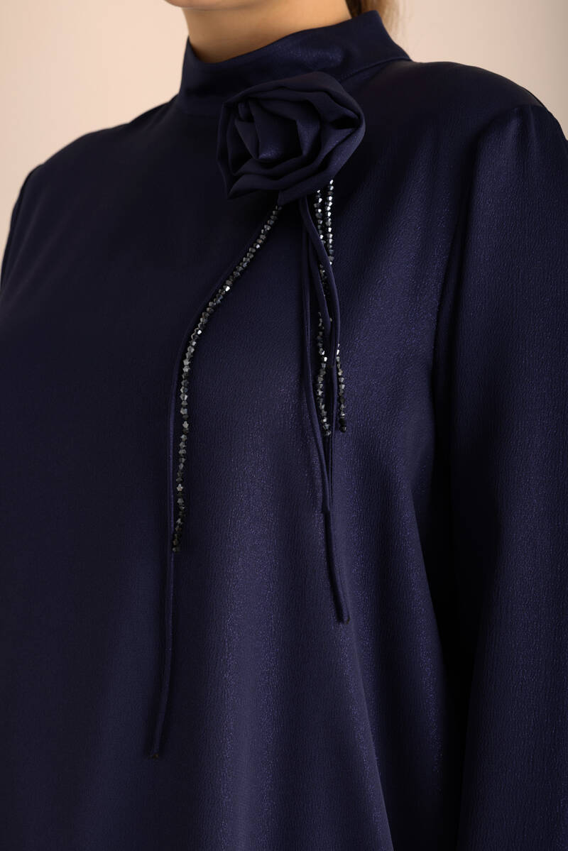 Mavi Kemeri İşlemeli Dökümlü Tunik