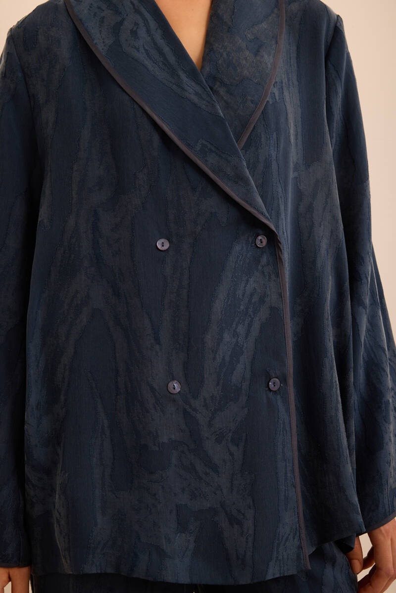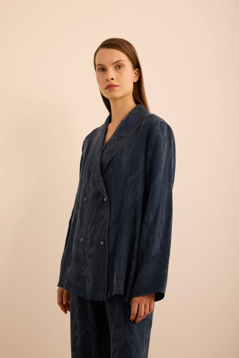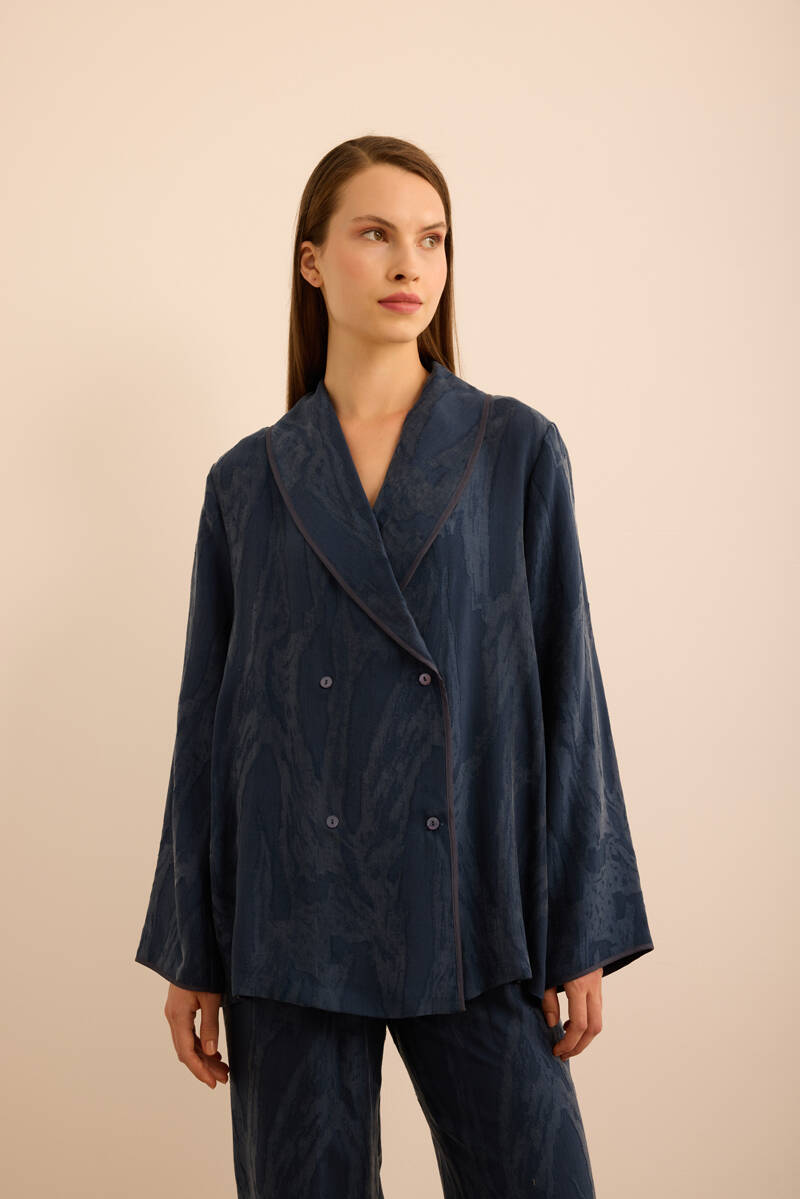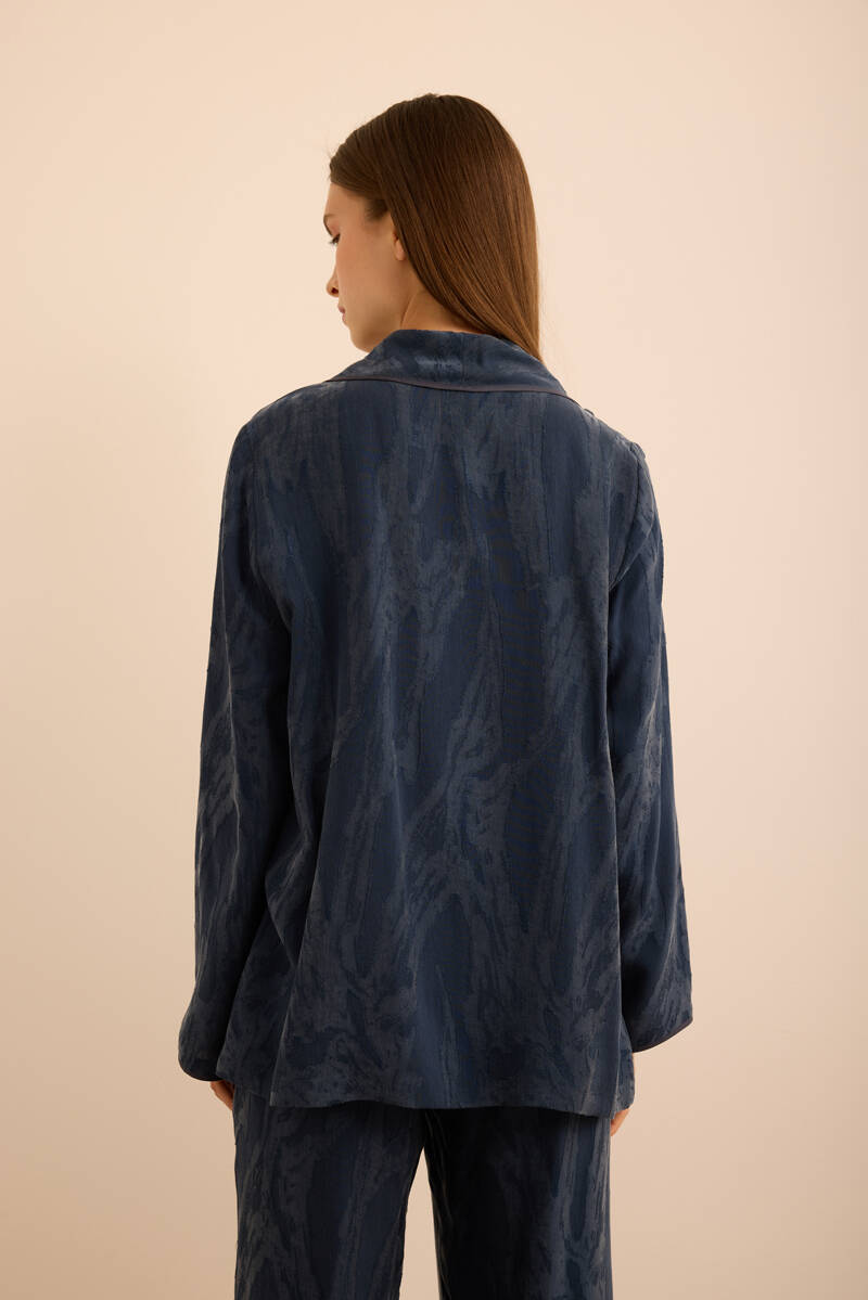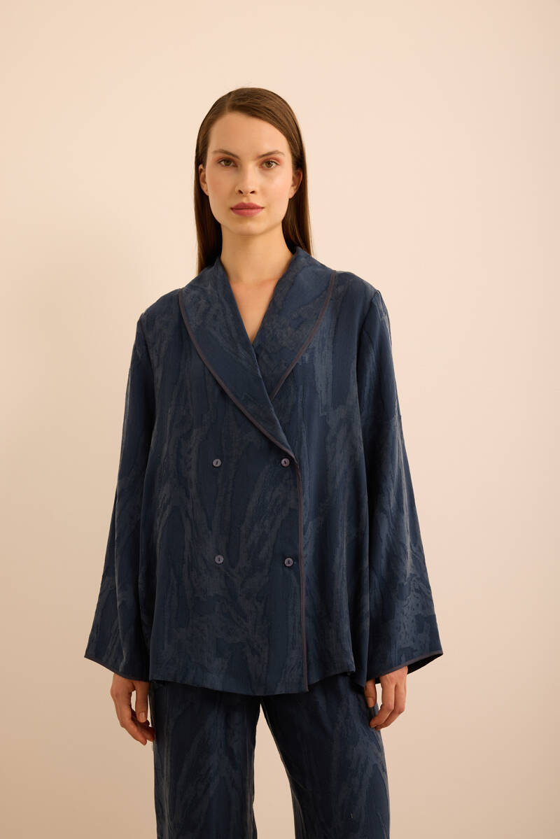 Kemik Çiçek Dokulu Kruvaze Kapama Tencel Pijama Üstü
