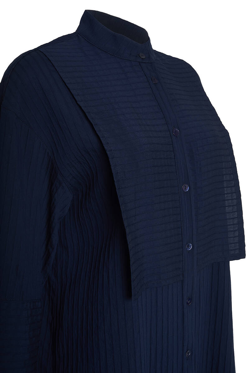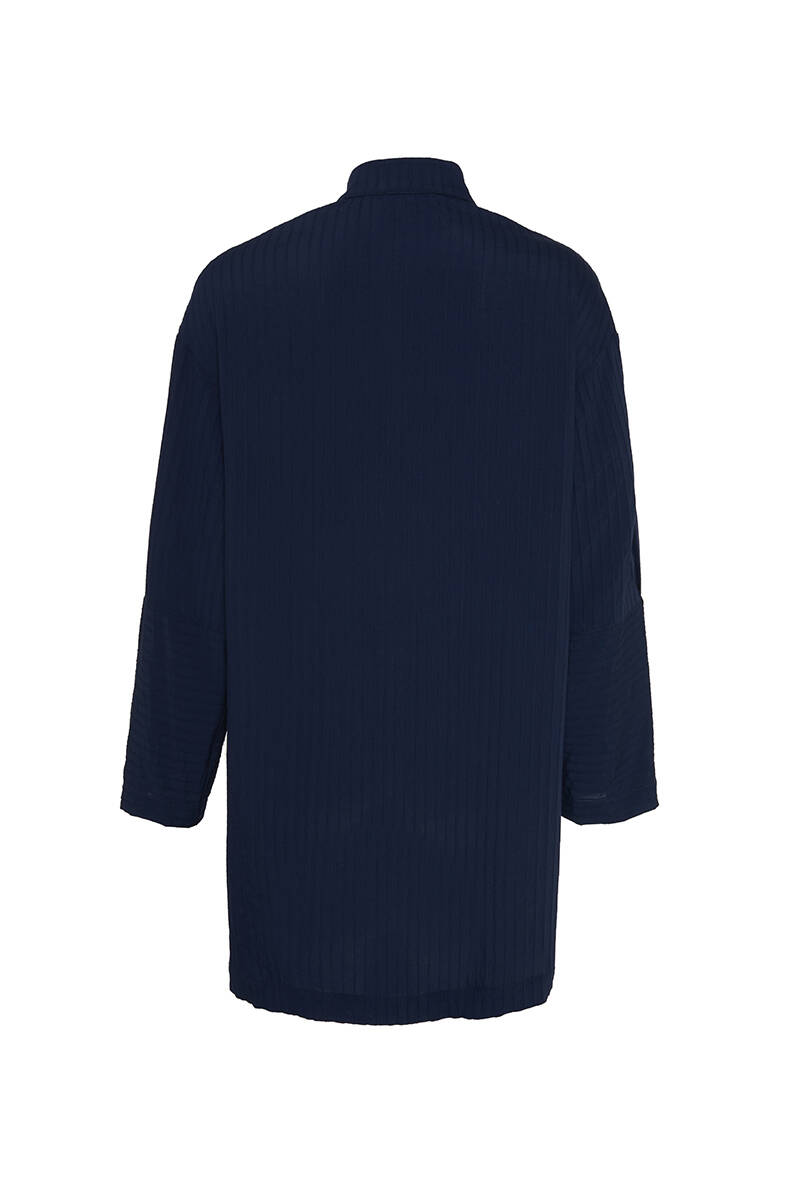 Lacivert Çizgili Kumaş Kolları Detaylı Tunik