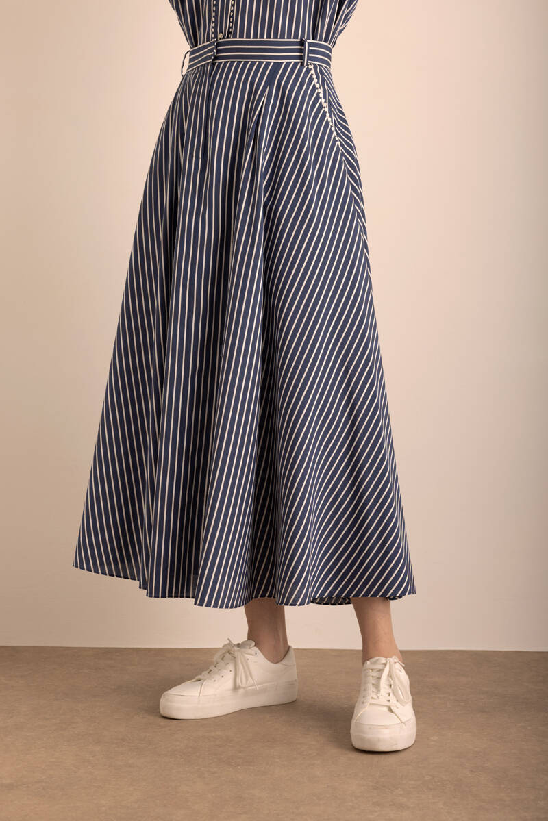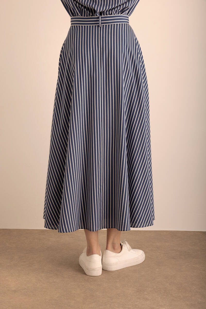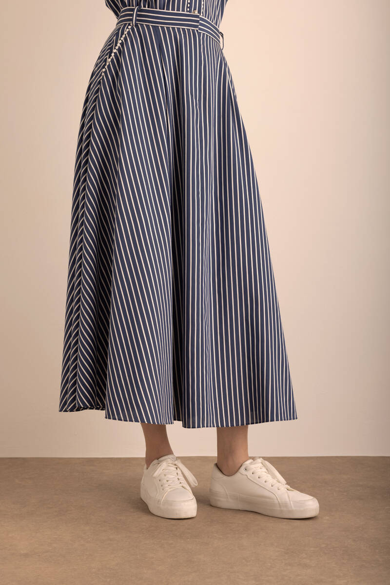 Lacivert Çizgili Top Şerit Aksesuar Detaylı Viscon Etek