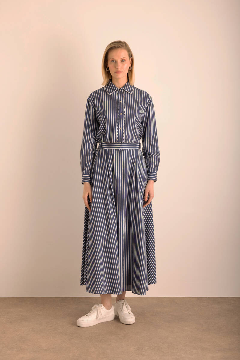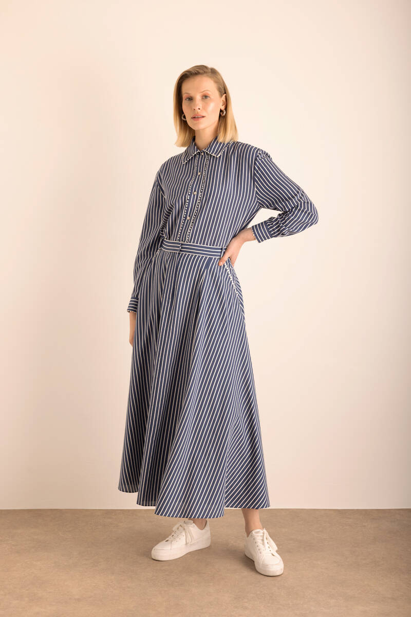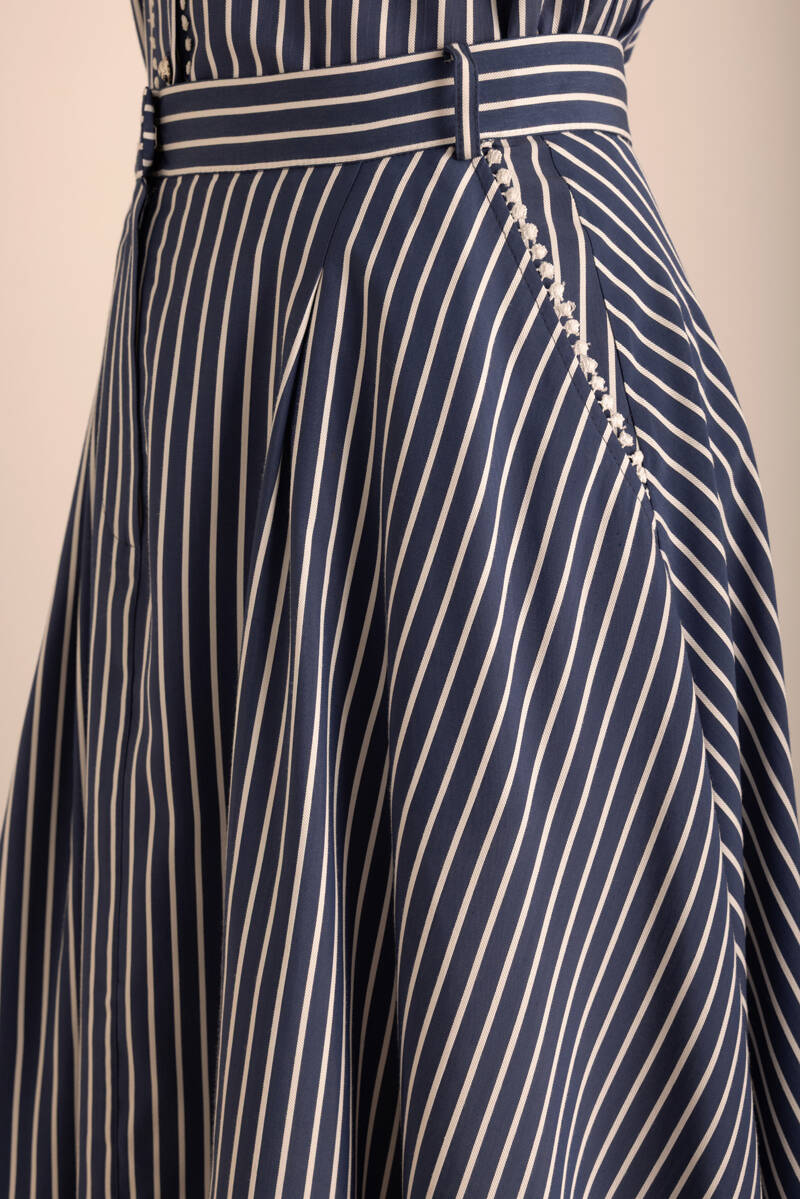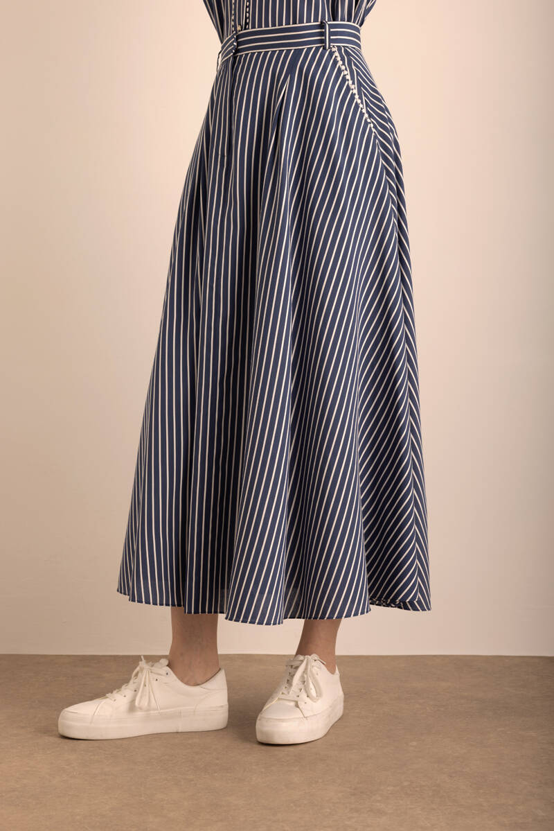 Lacivert Çizgili Top Şerit Aksesuar Detaylı Viscon Etek