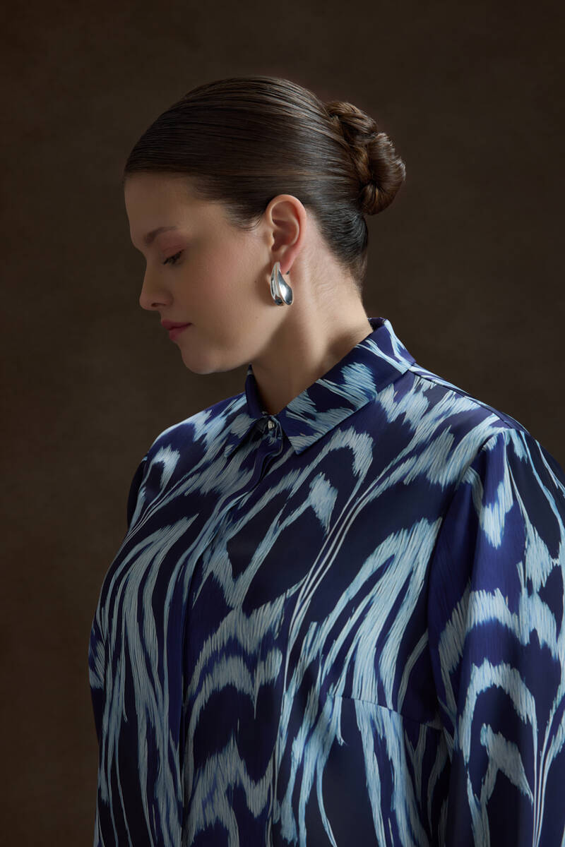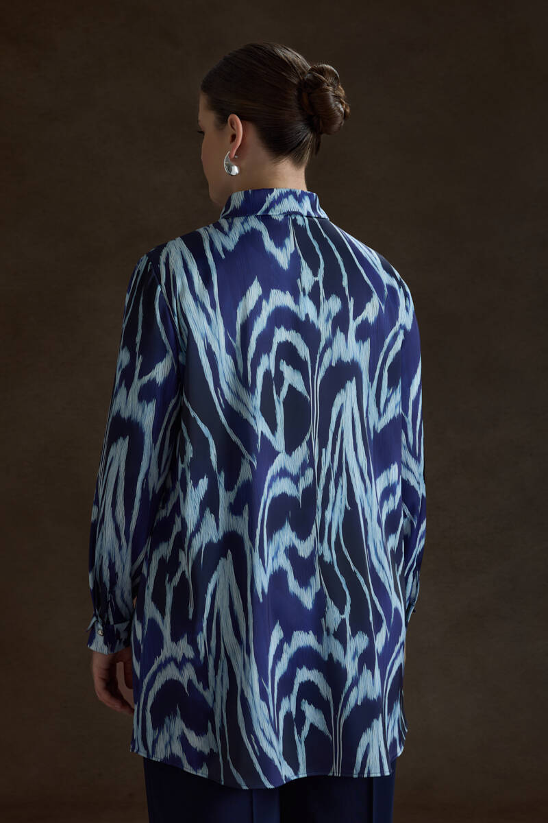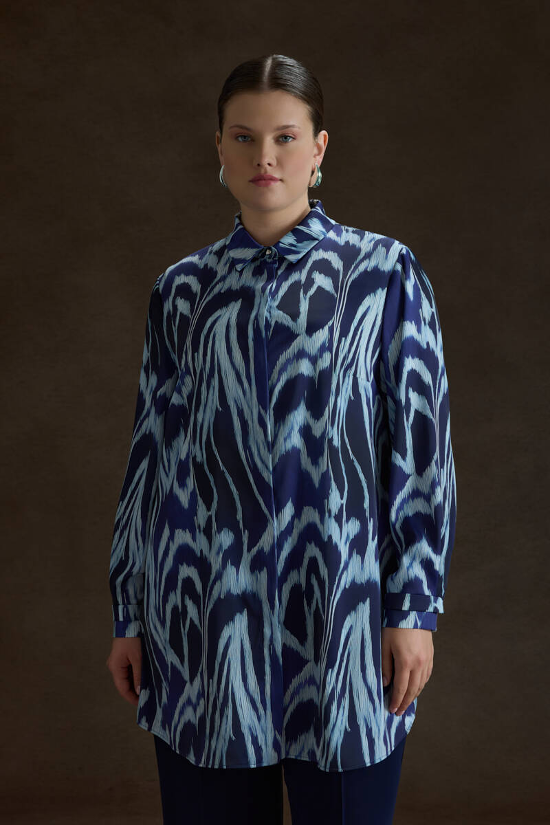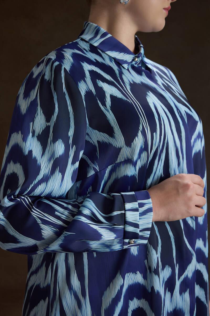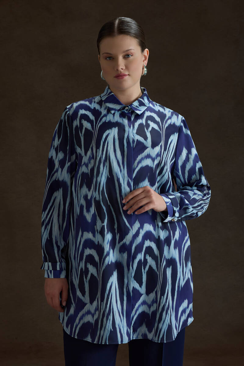 Mavi Kemeri İşlemeli Dökümlü Tunik