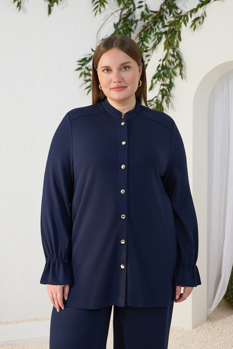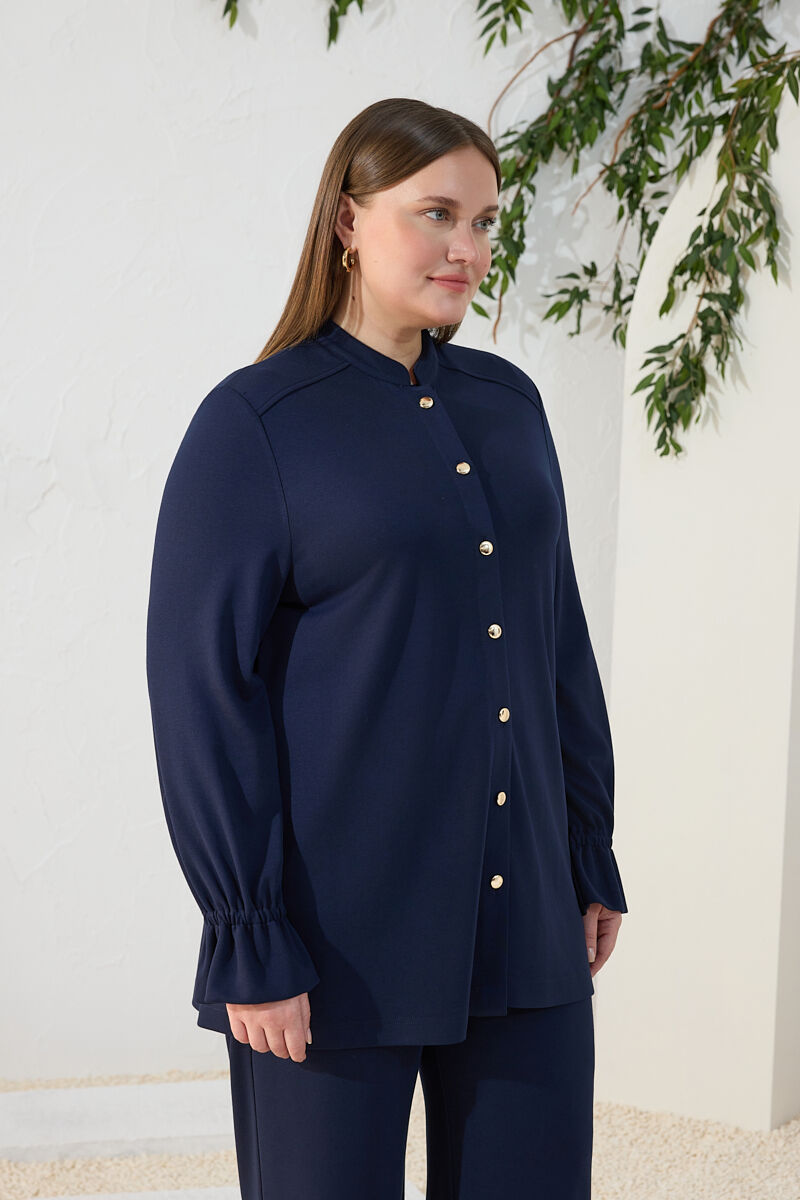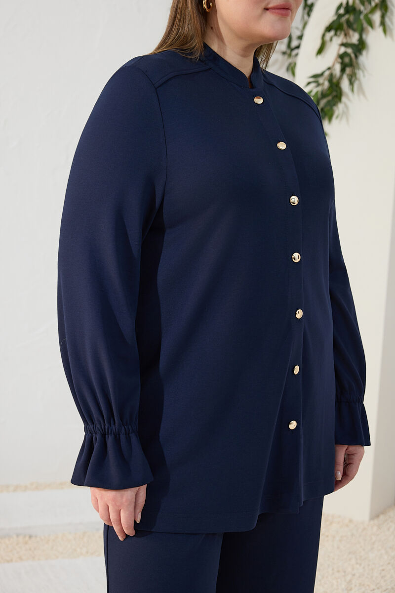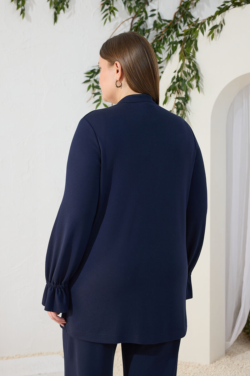 Lacivert Dik Yaka Kol Lastik Detaylı Bluz