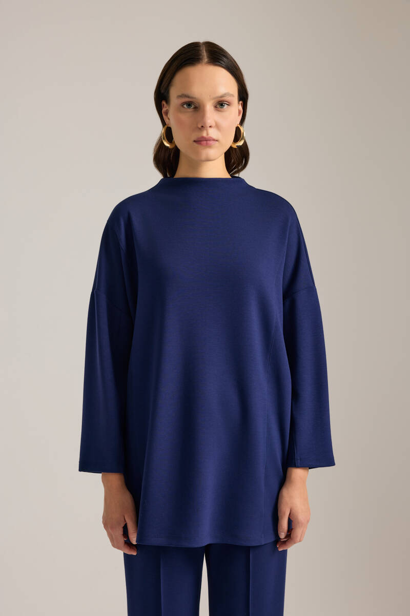 Lacivert Dik Yaka Viscon Sweatshirt