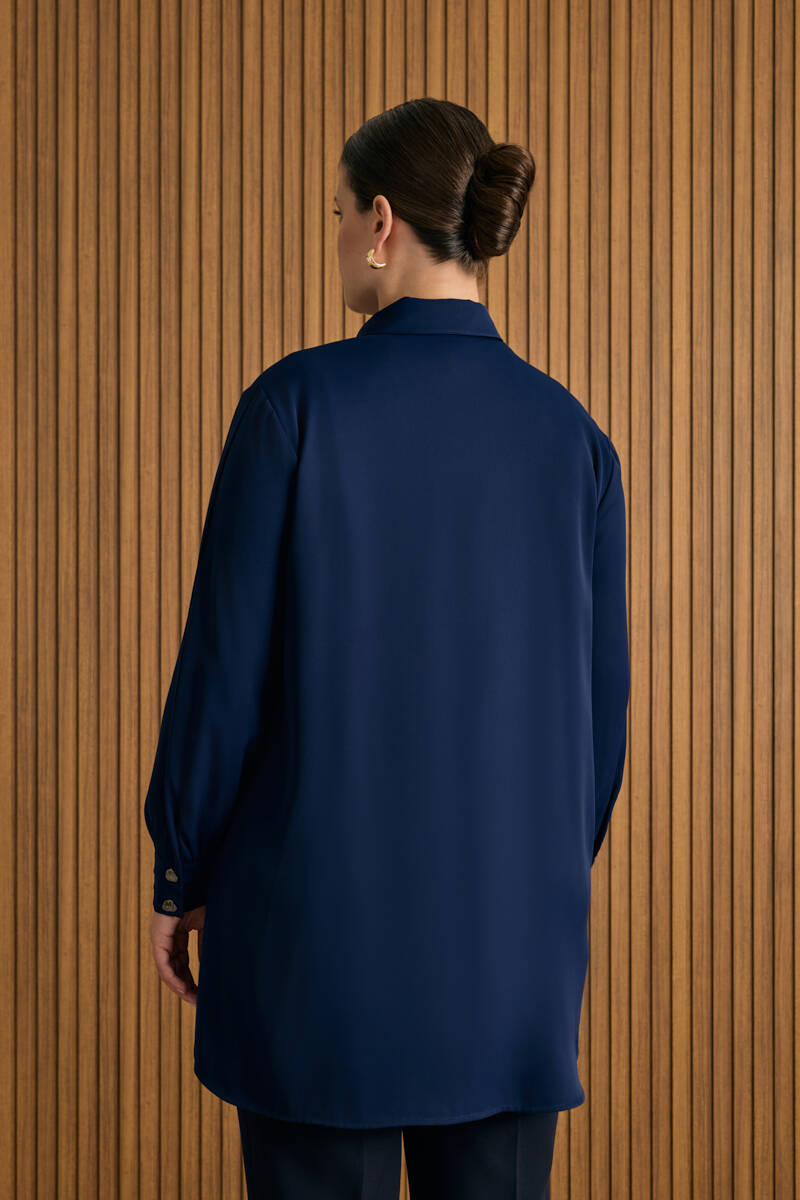 Mavi Kemeri İşlemeli Dökümlü Tunik