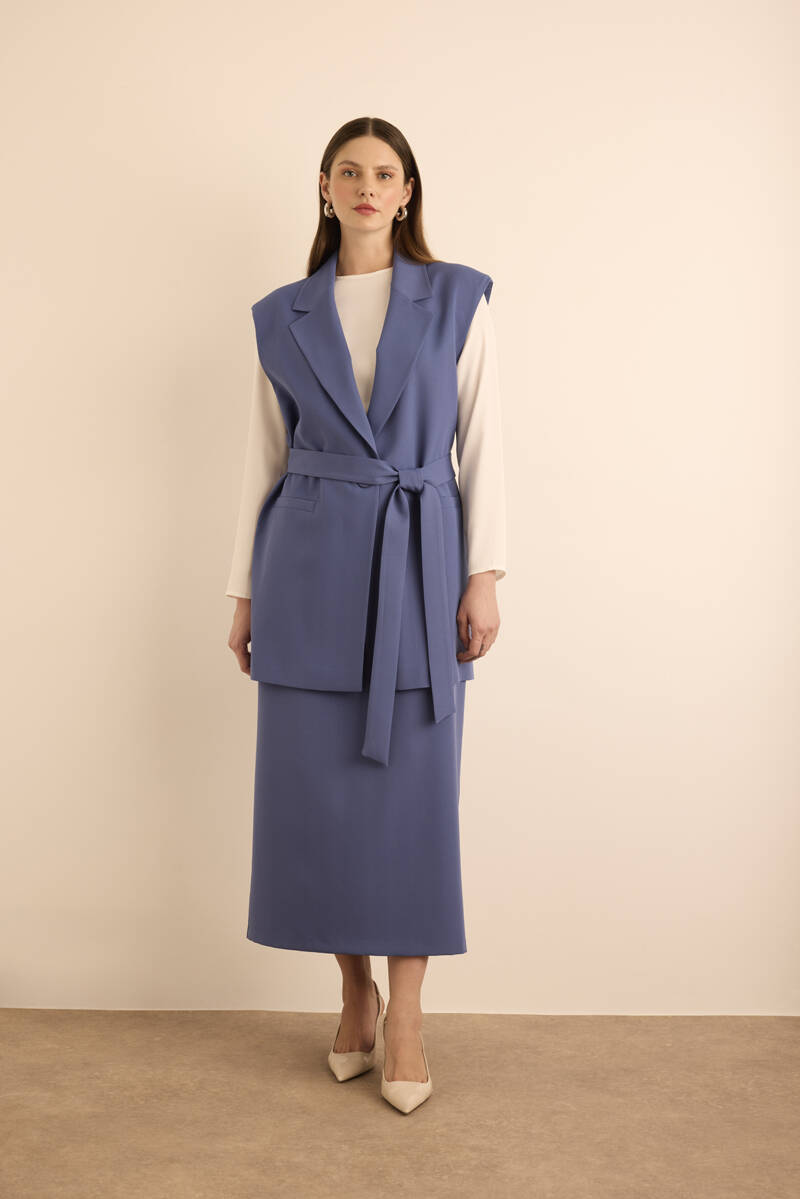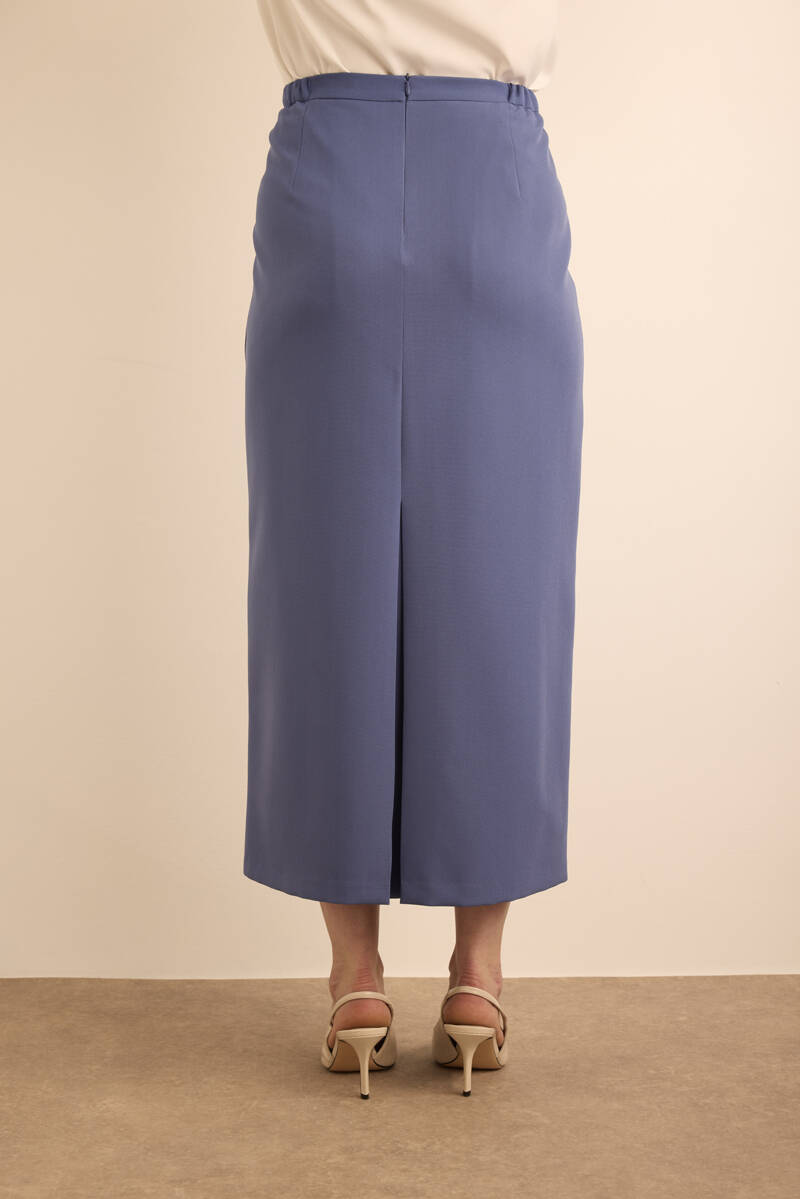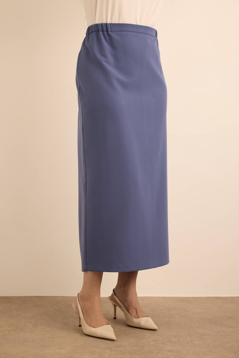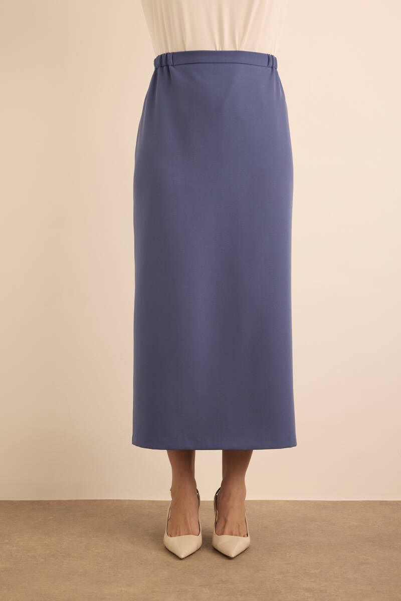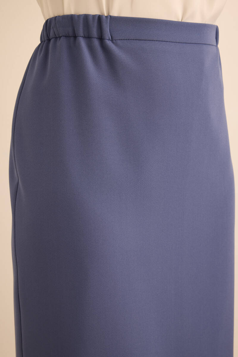 Lacivert Dokuma Beli Lastik Detaylı Etek