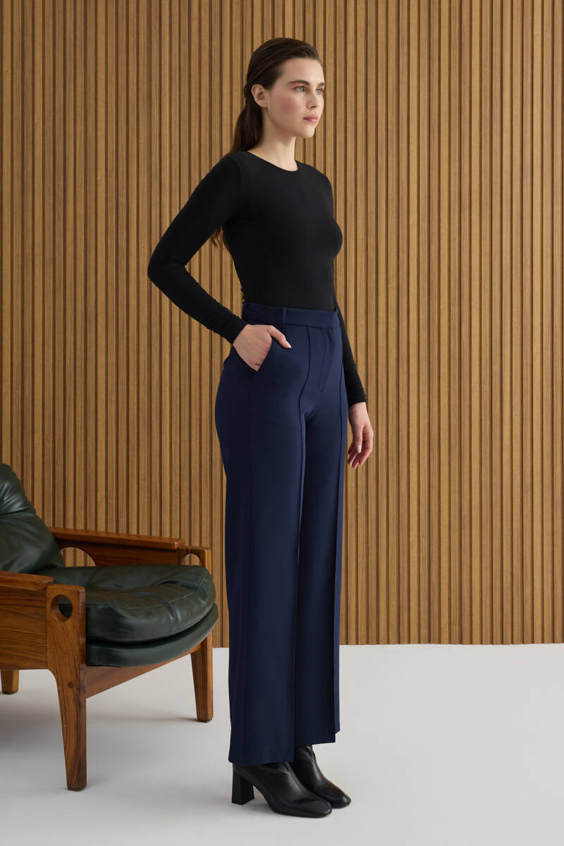 Siyah Belden Metal Toka Bağlama Detaylı Dokuma Pantolon