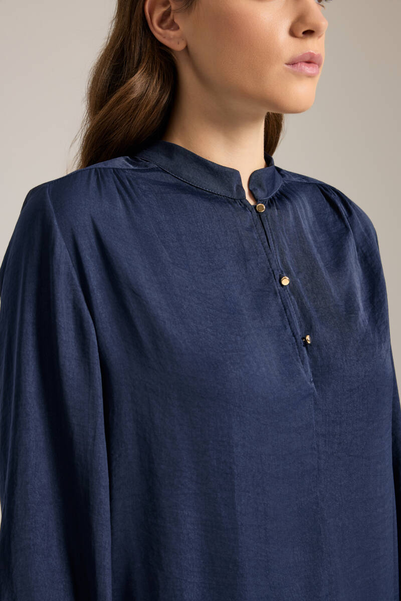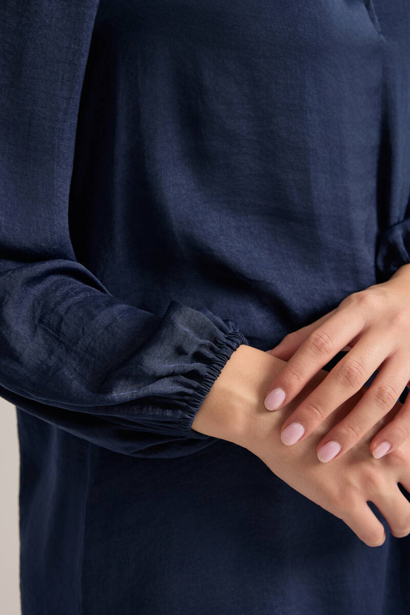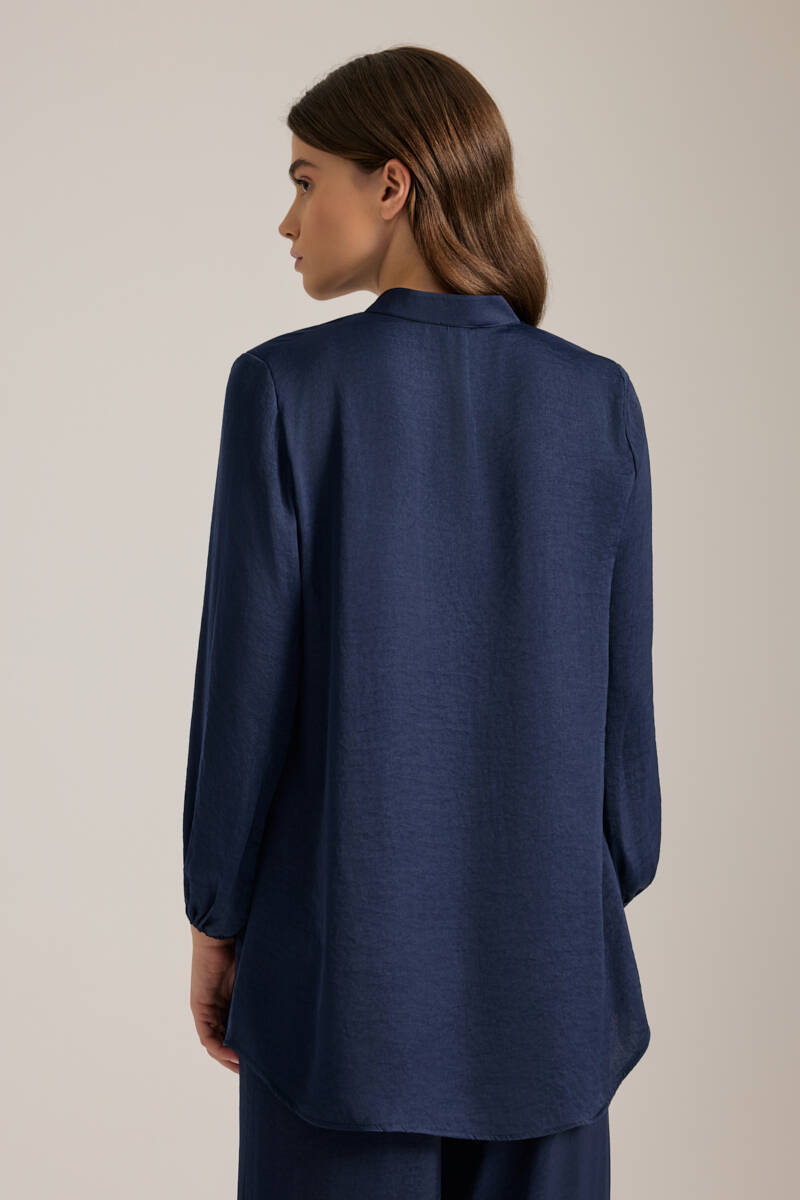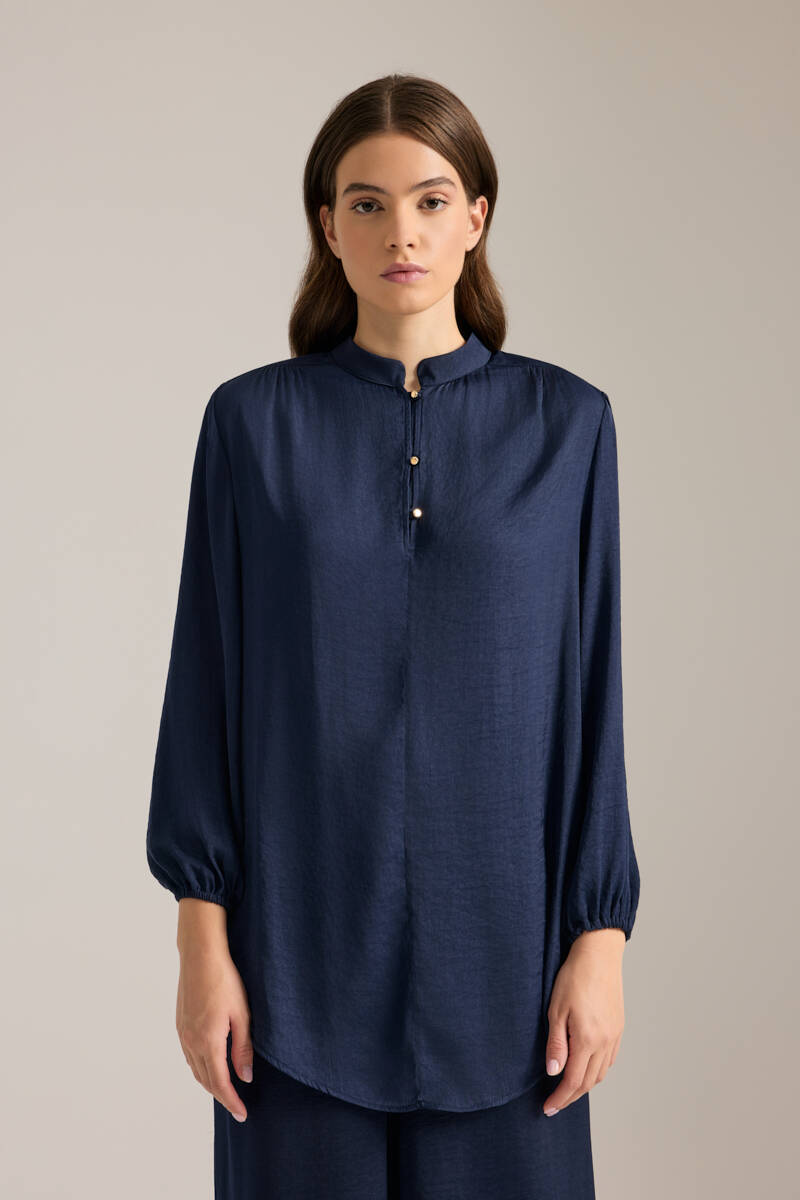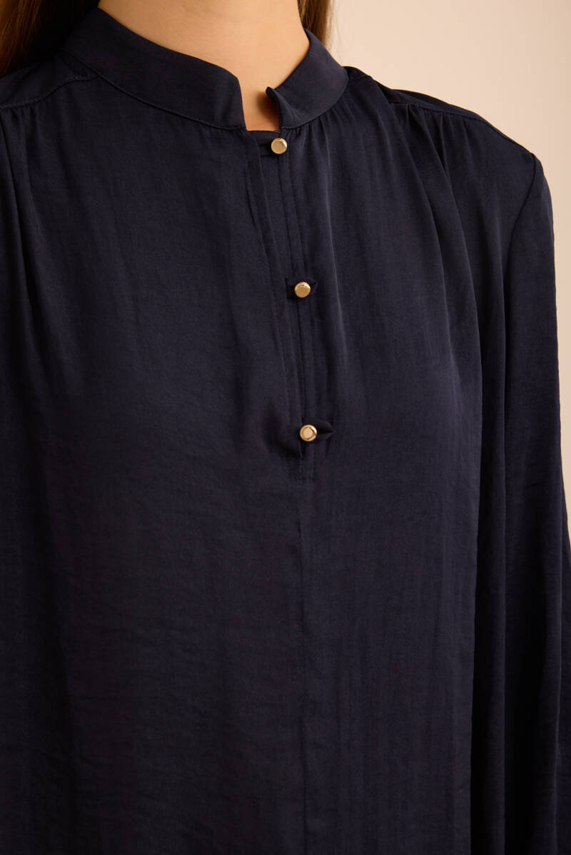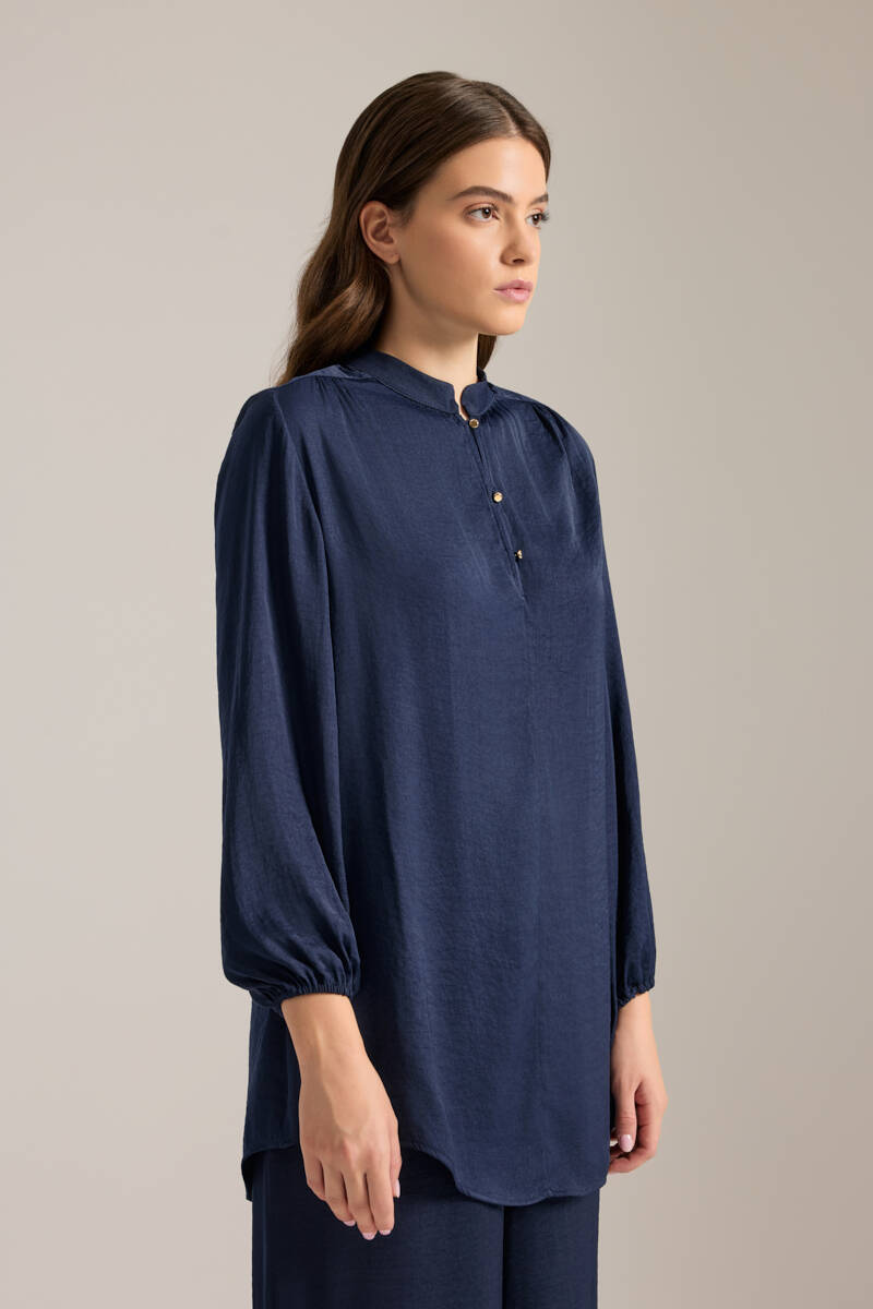 Saks Önden Apolet Detaylı Dokuma Tunik