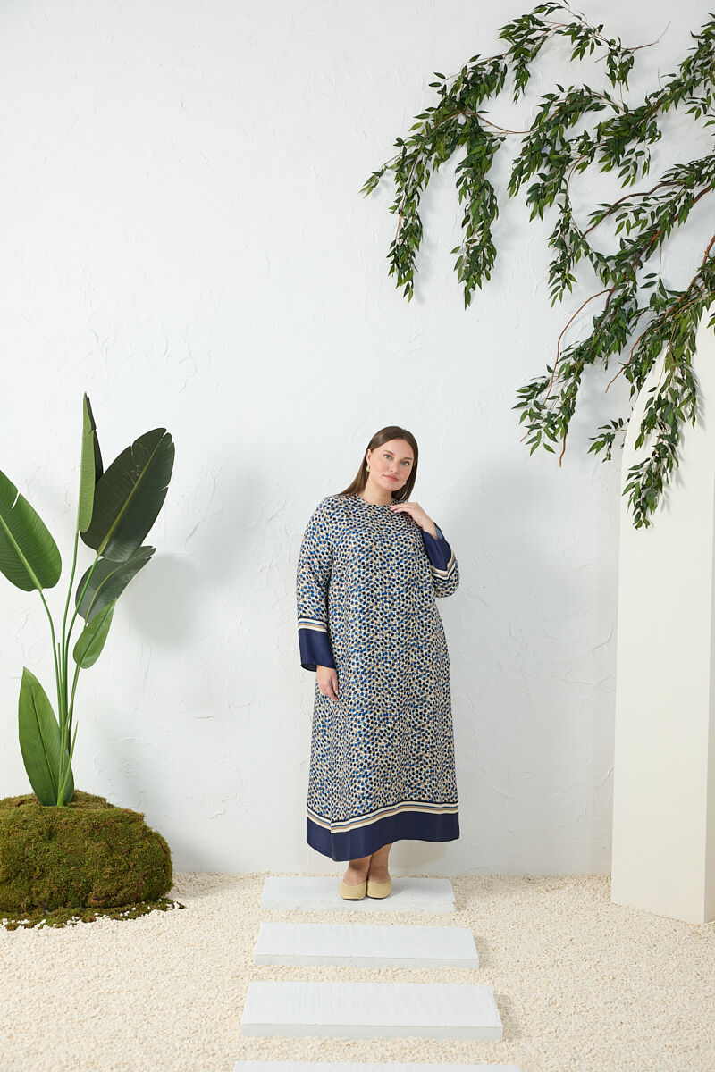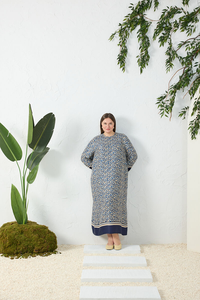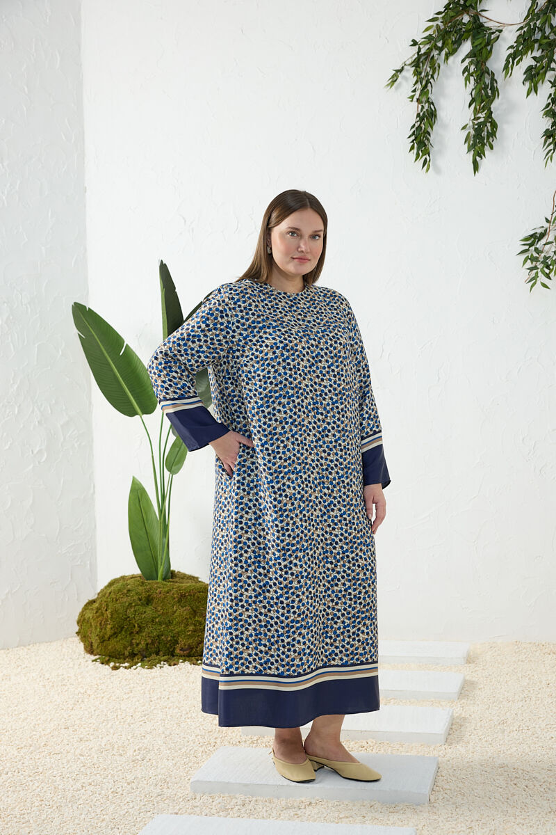 Mavi Leopar Desenli Viscon Gömlek Elbise