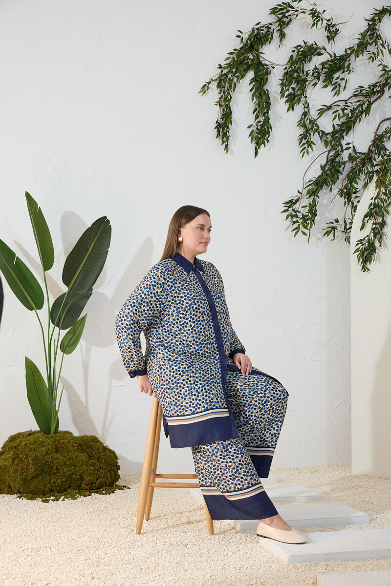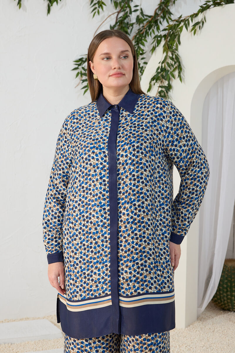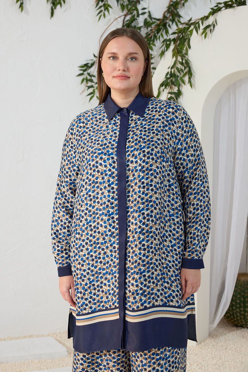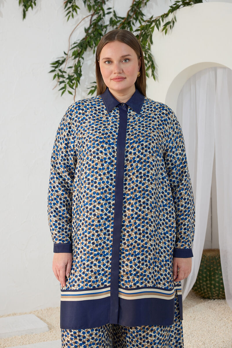 Mavi Kemeri İşlemeli Dökümlü Tunik