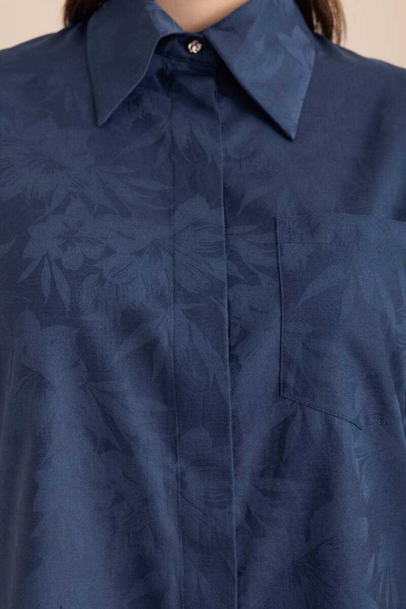 İndigo Tencel Keten Bluz
