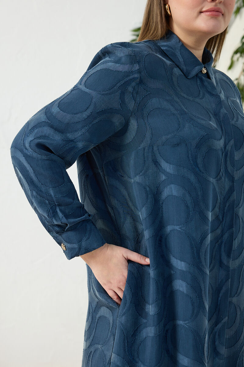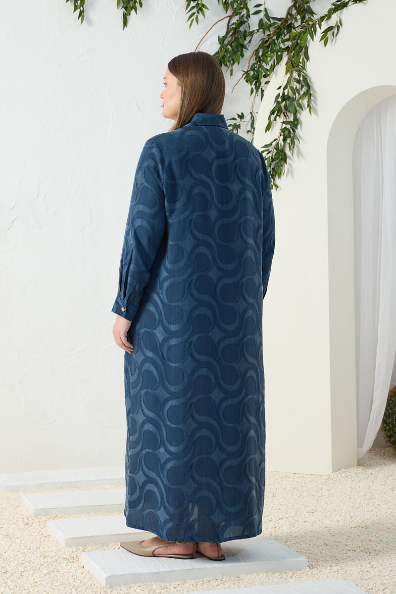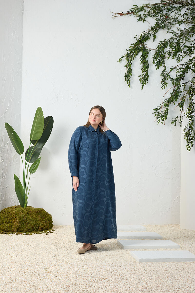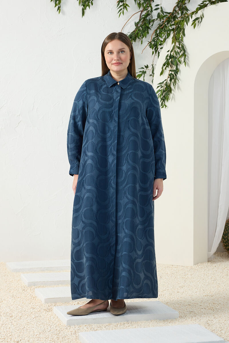 İndigo Fermuarlı Keten Ferace