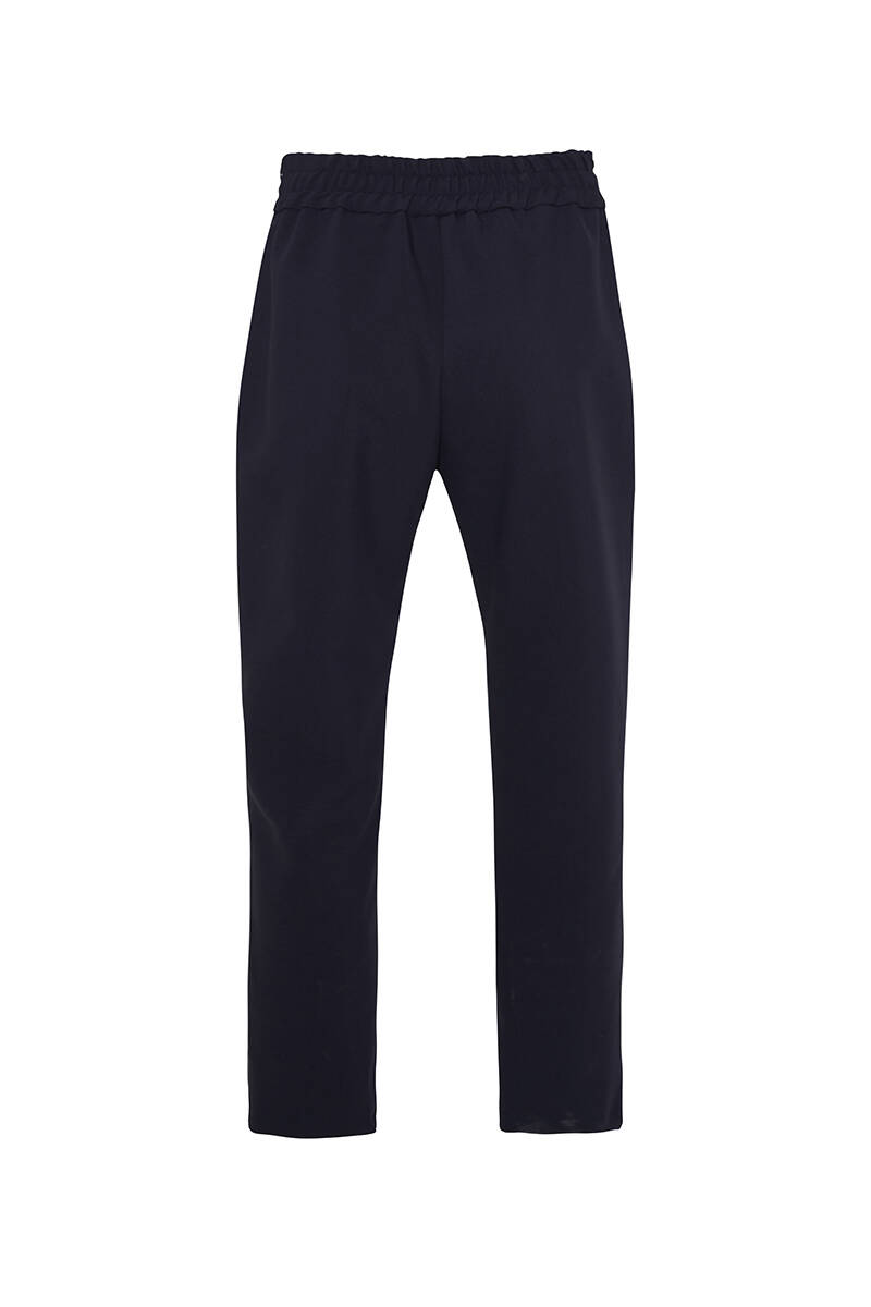 Lacivert Kalın Kemerli Lastikli Pantolon