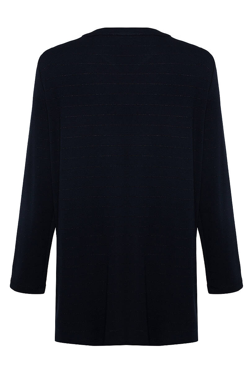 Lacivert Kendinden Çizgili Kumaş Örme Hırka