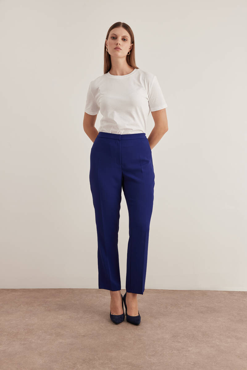 Lacivert Beli Lastikli Dokuma Pantolon