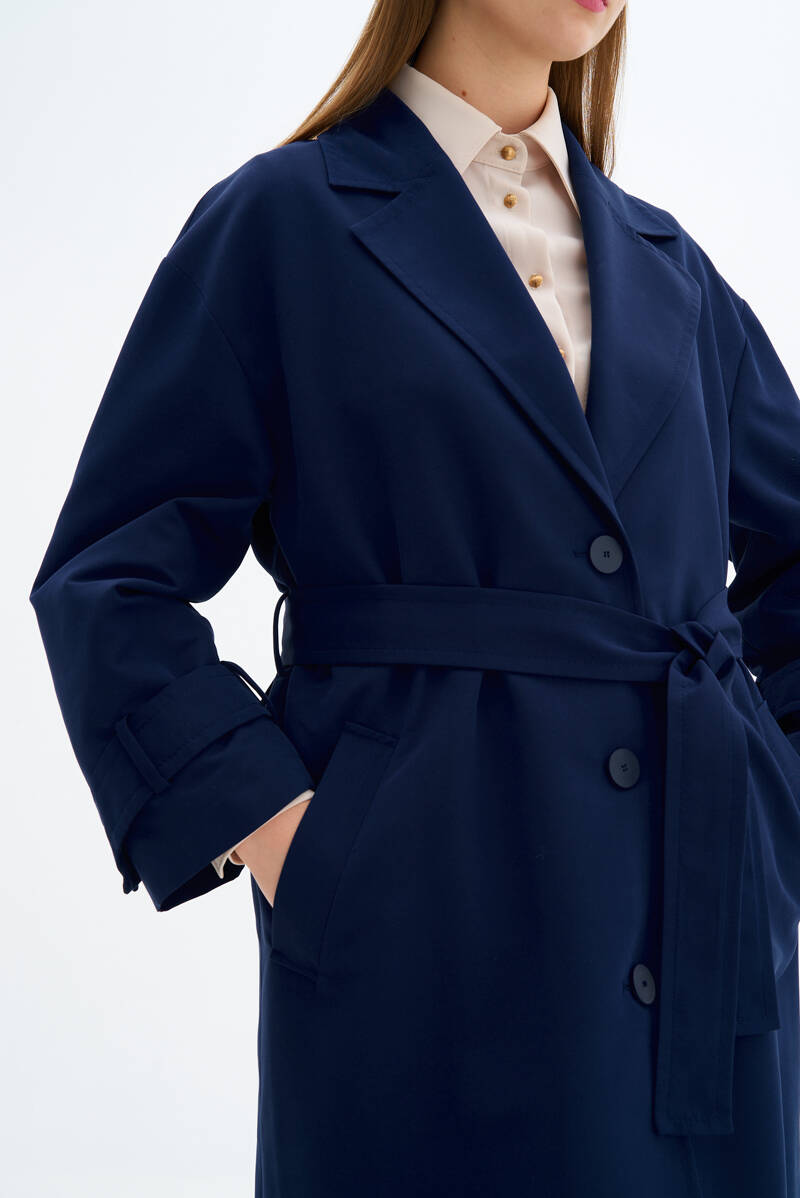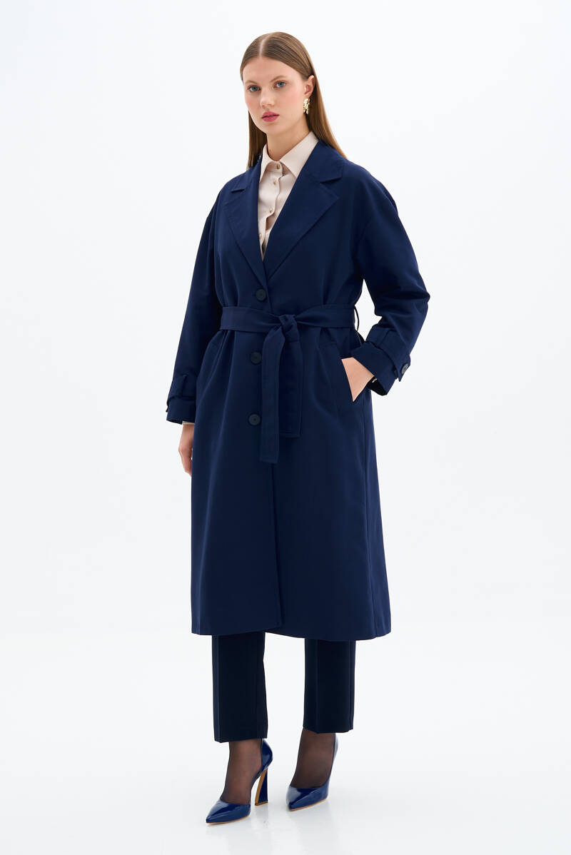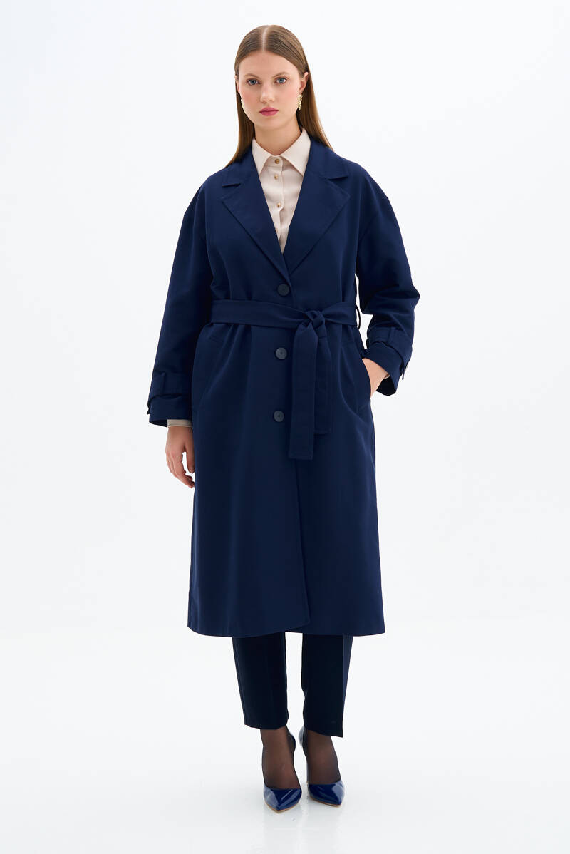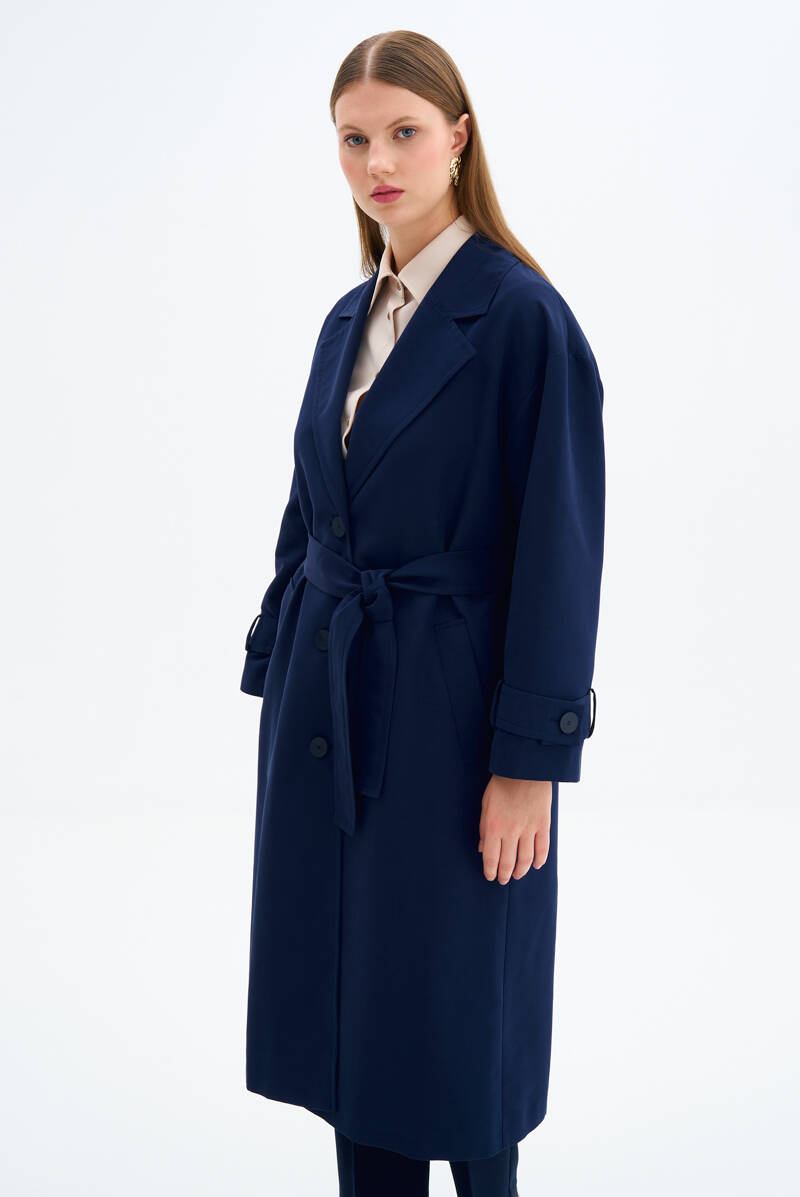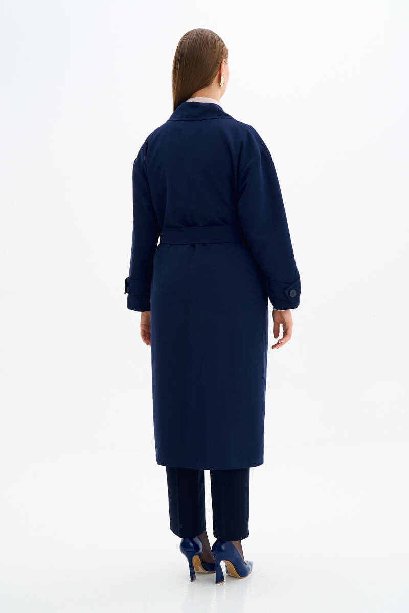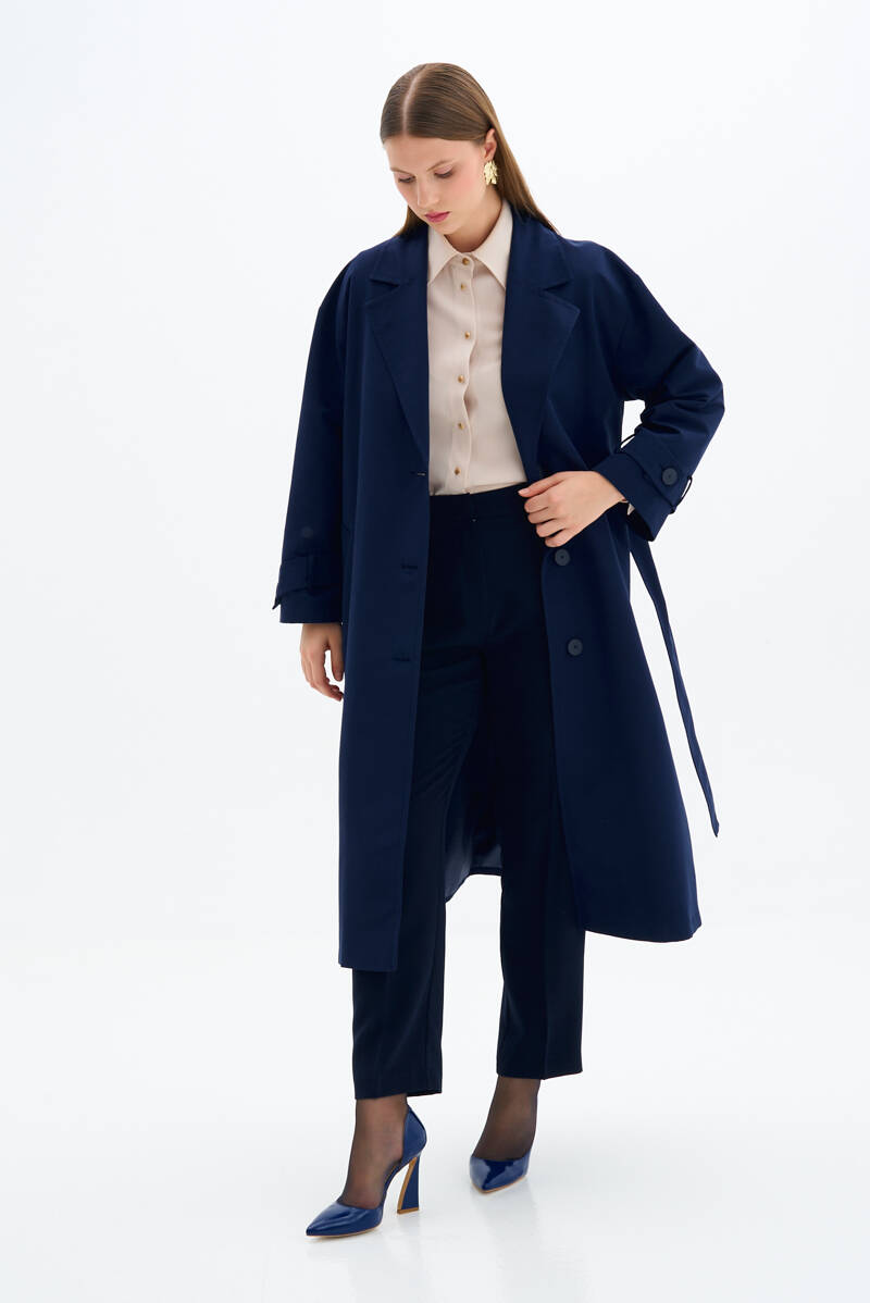 Lacivert Kolları Apoletli Trençkot