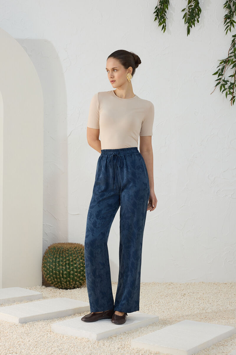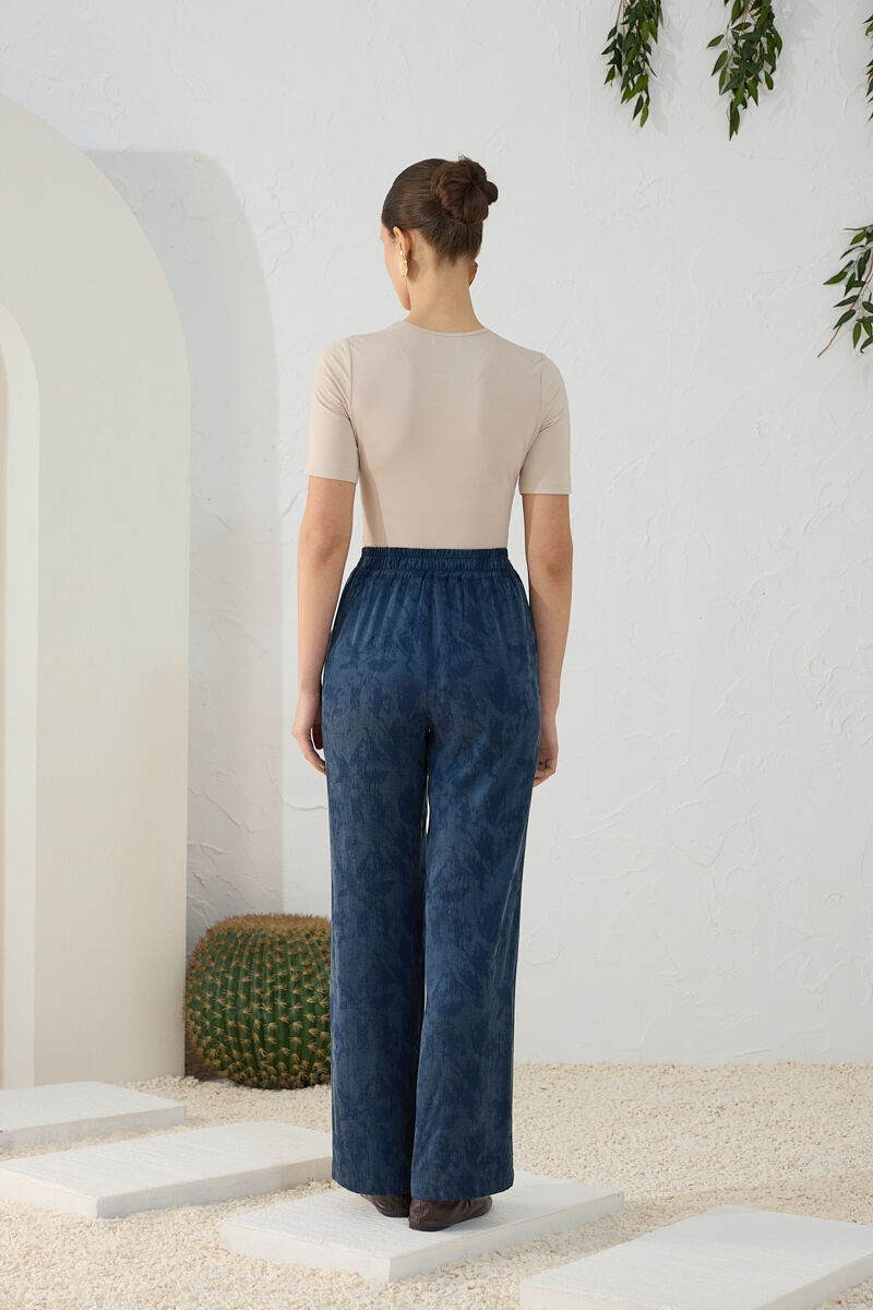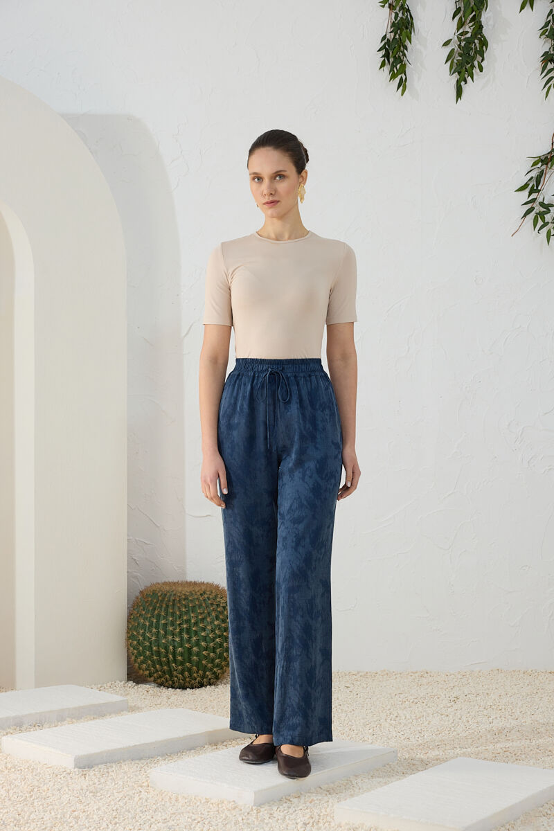 Mavi Beli Lastikli Keten Pantolon
