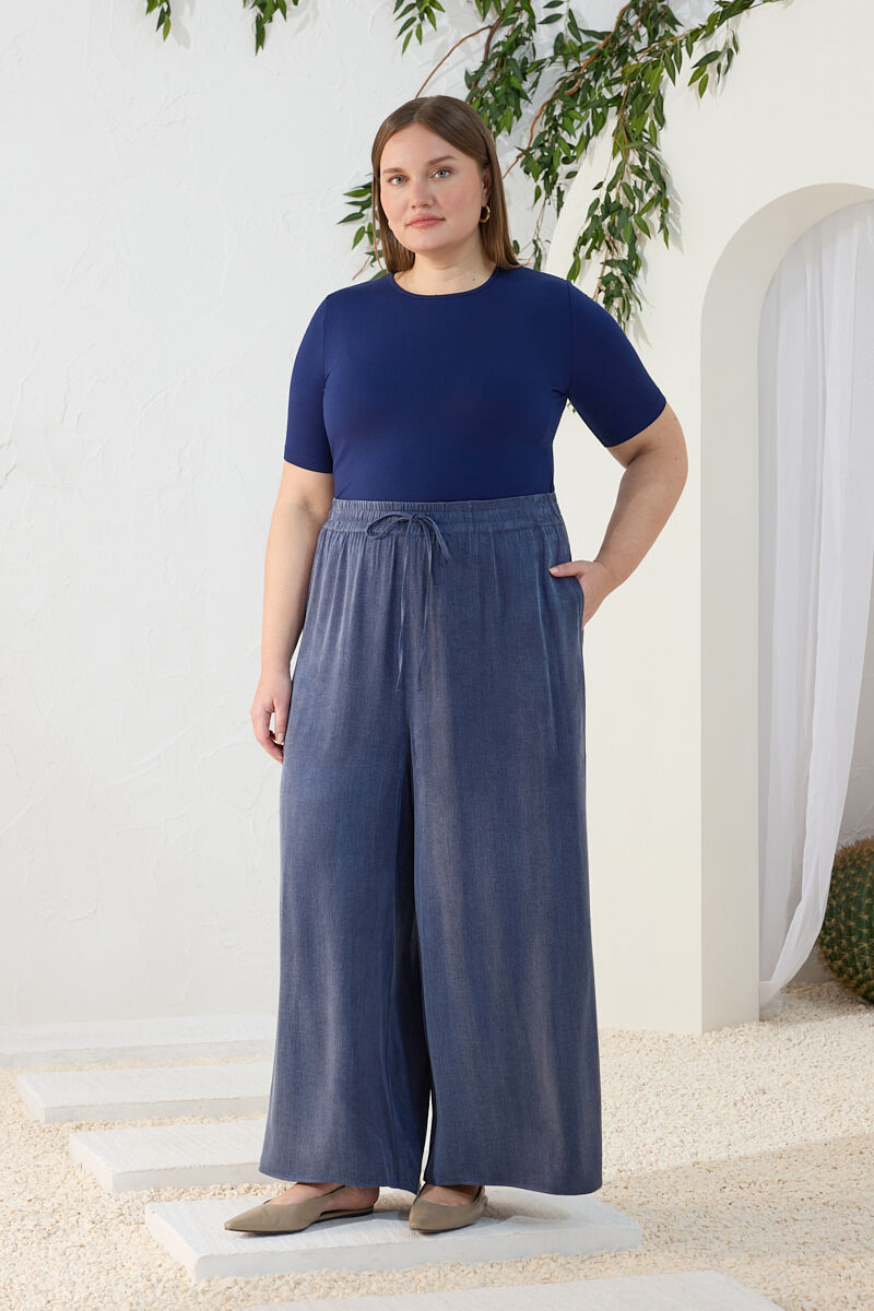 Lacivert Lastikli Detaylı Rahat Kalıp Pantolon Etek