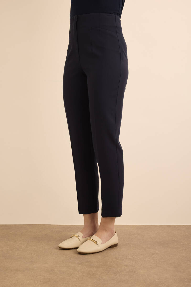 Lacivert Önü Cep Detaylı Dokuma Pantolon