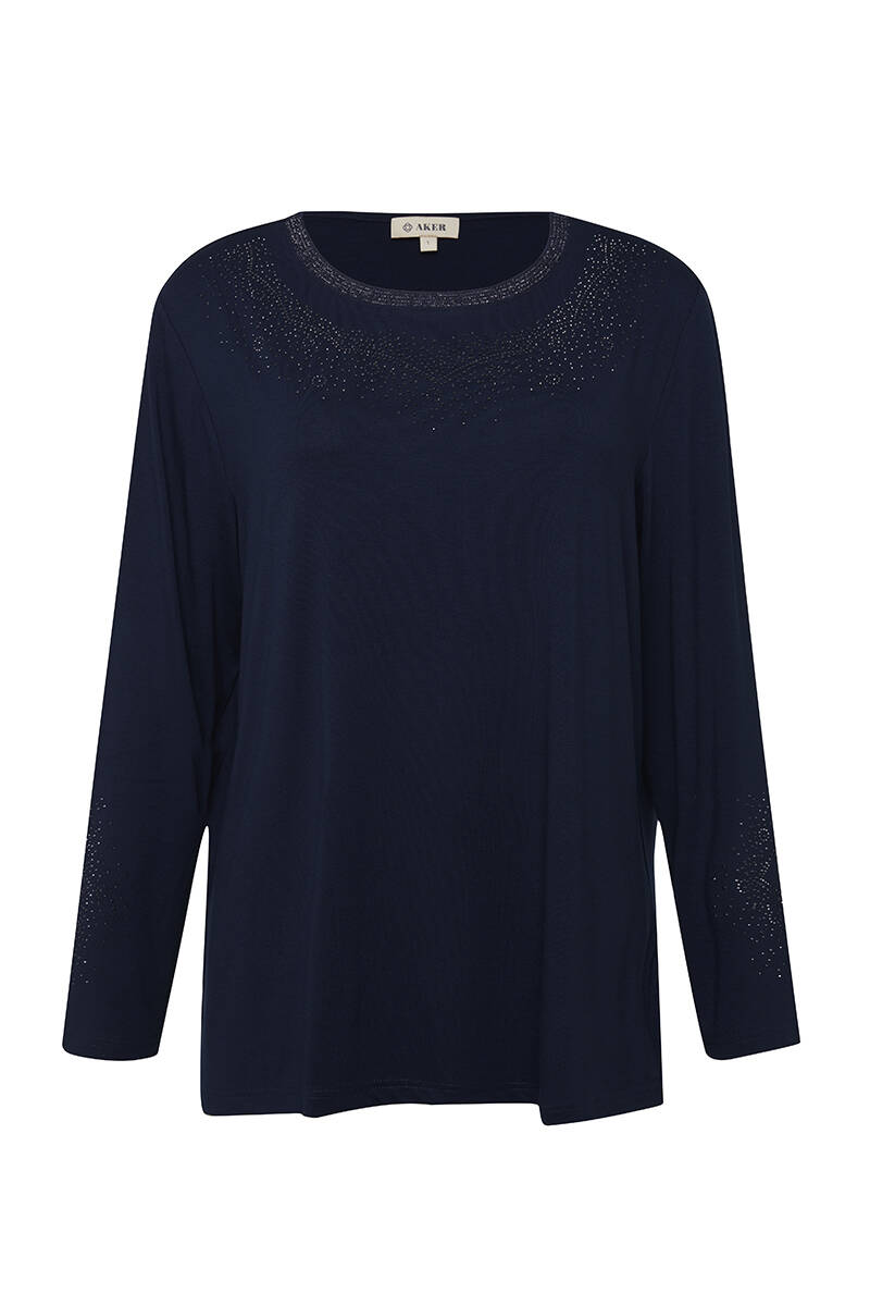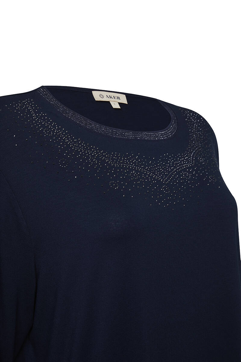 Lacivert Uzun Kollu Bisiklet Yaka Body
