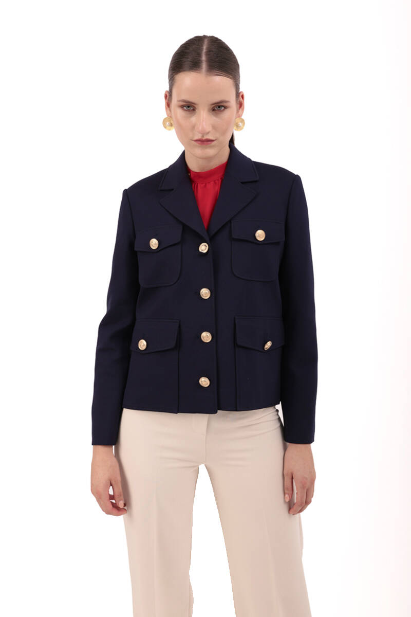 Kırmızı Fleto Cepli Düğmeli Ceket
