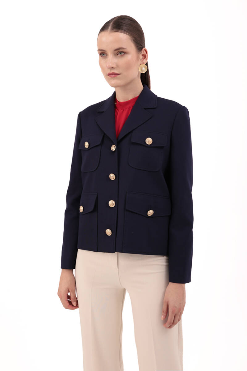 Lacivert Örme Kısa Ceket