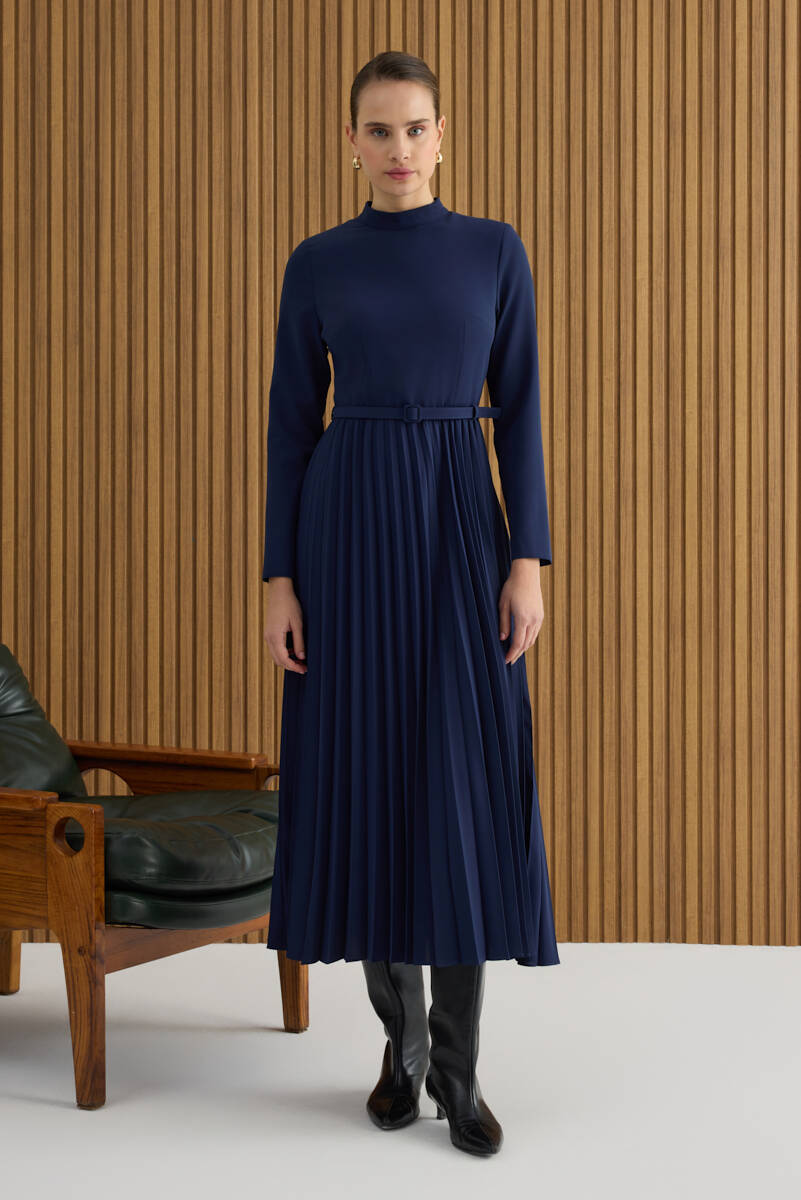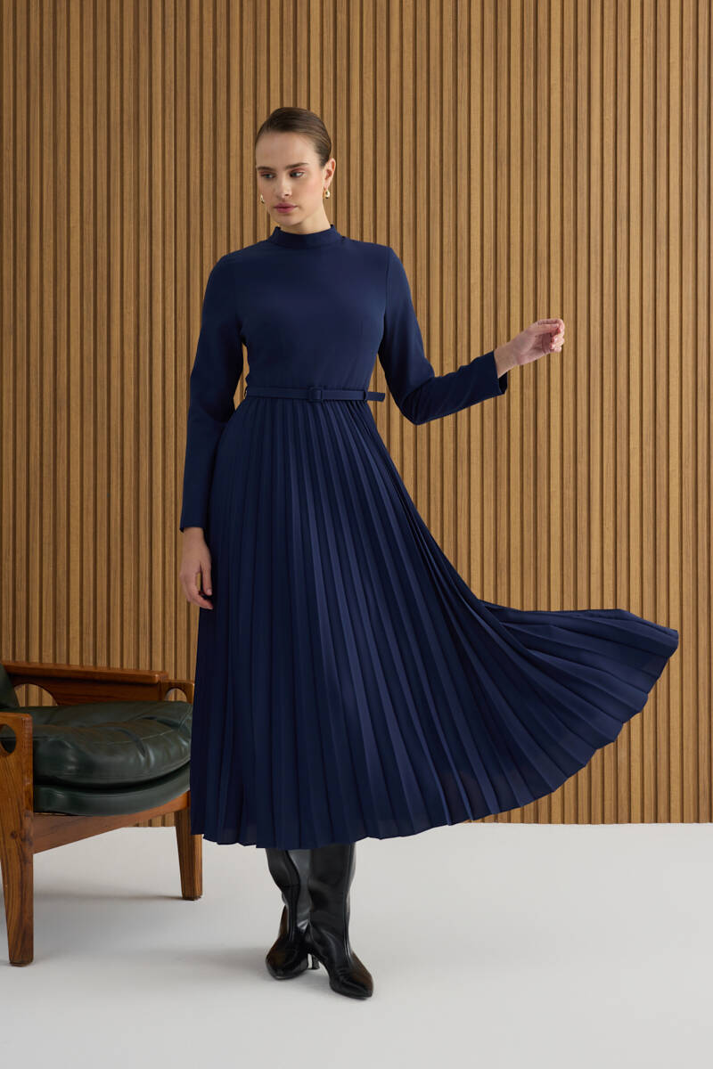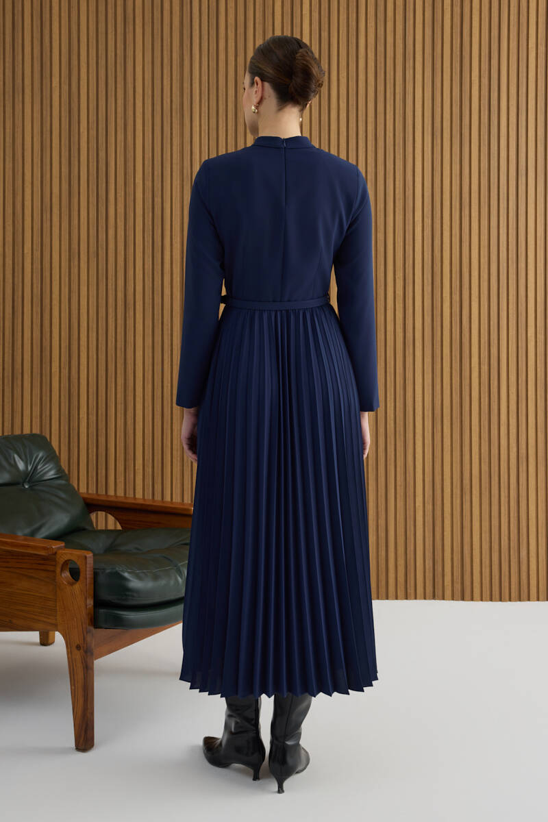 Lacivert Üst Kısmı Volan Parça Hareketli Dökümlü Elbise