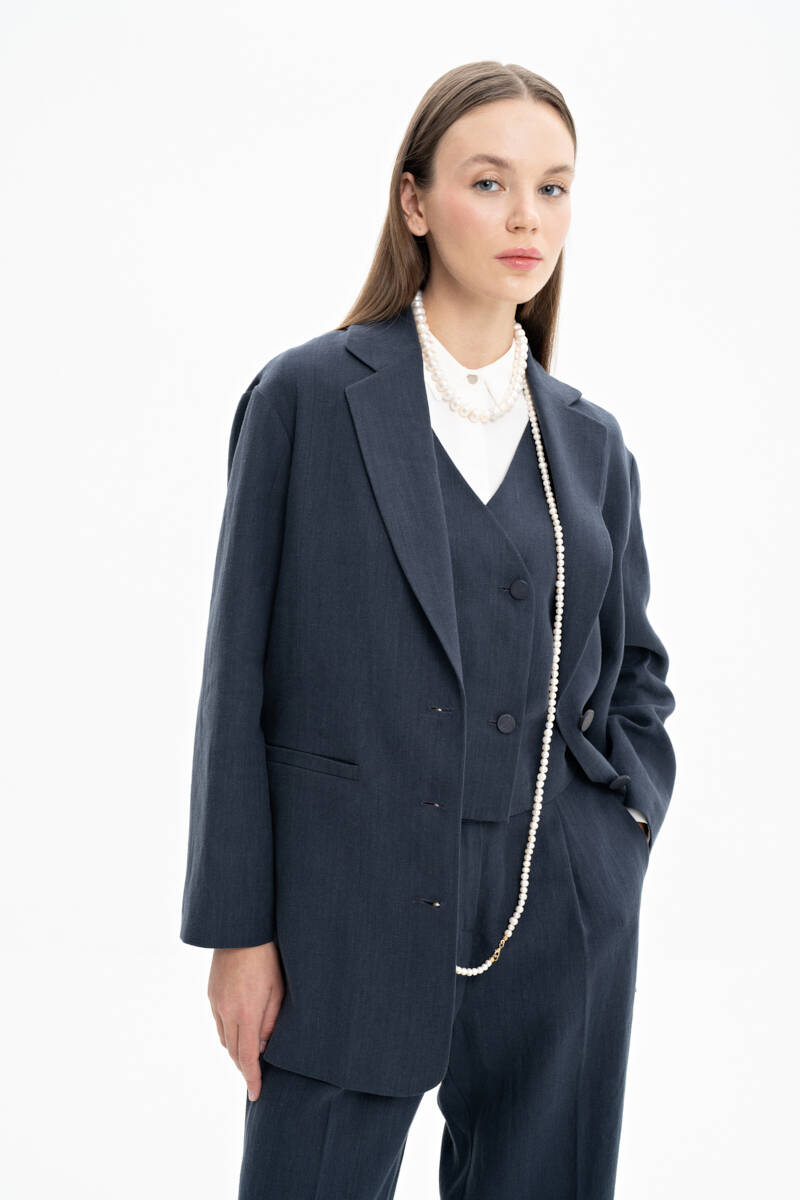 Kırmızı Fleto Cepli Düğmeli Ceket