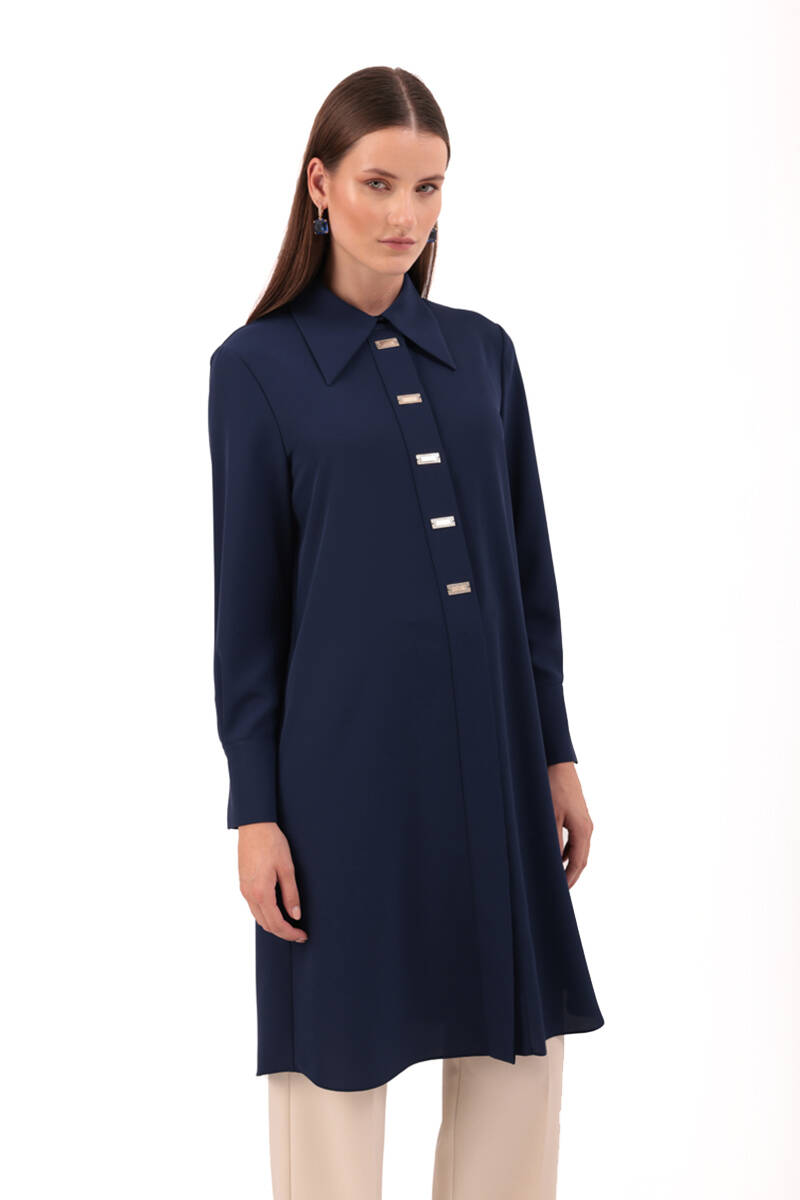 Mint Rahat Kesim İşleme Detaylı Tunik