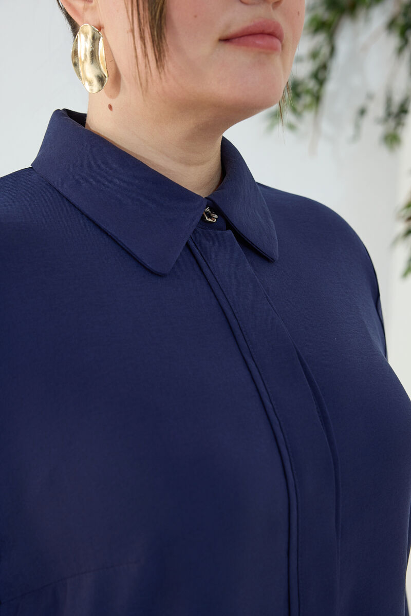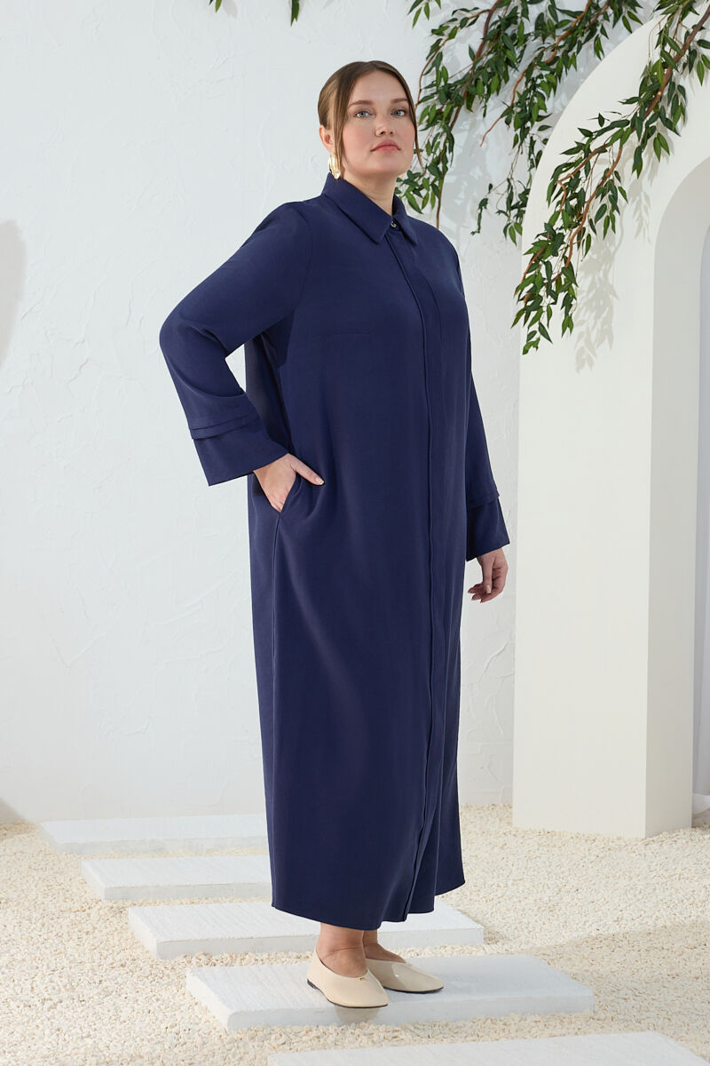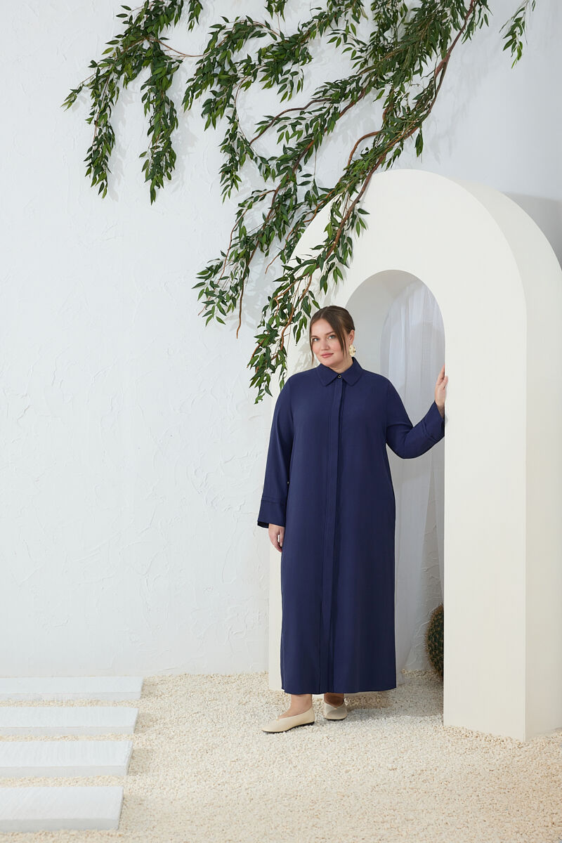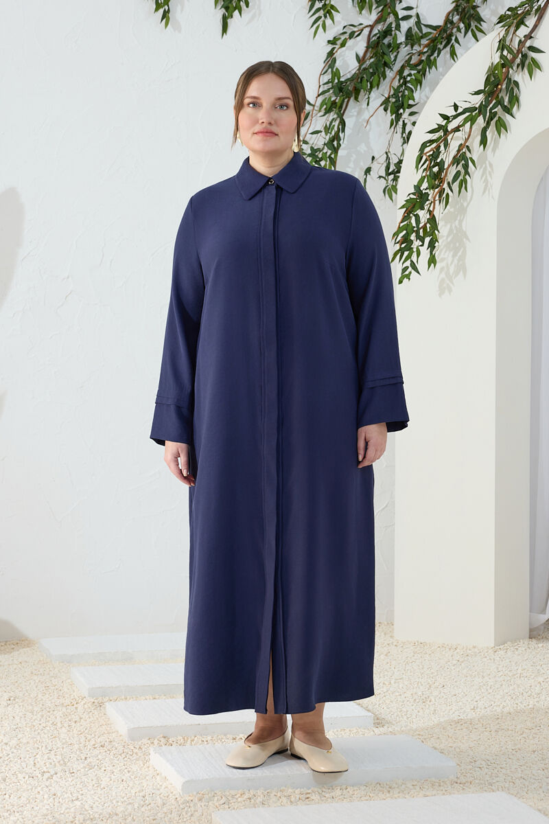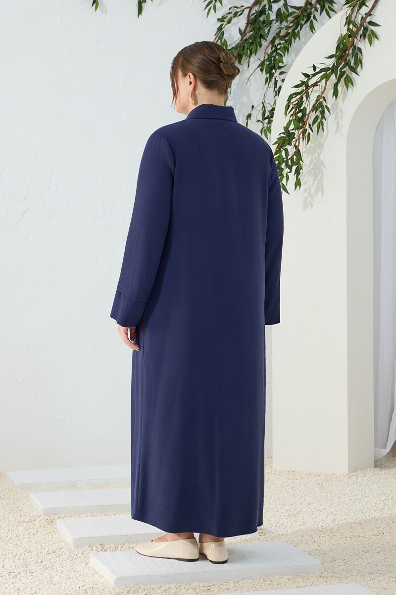 Lacivert Önden Fermuarlı Tencel Cotton Ferace